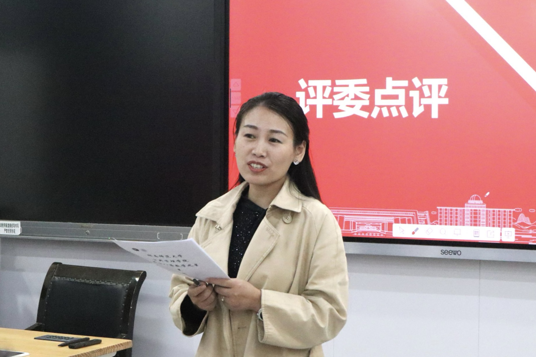 选手教学展示后,彭婷对选手的现场表现进行点评。她结合PPT展示、教学组织和知识讲解的情况,鼓励选手实施启发性、探索性、创新性教学。苏静表示,选手应将专业知识融入教学实践,发挥“本科生导师制”的制度优势,实现教学内容专业化、精细化。根据选手们的综合表现,评委老师们依次评选出了最佳教案奖、最佳PPT奖、最佳板书奖及一、二、三等奖。