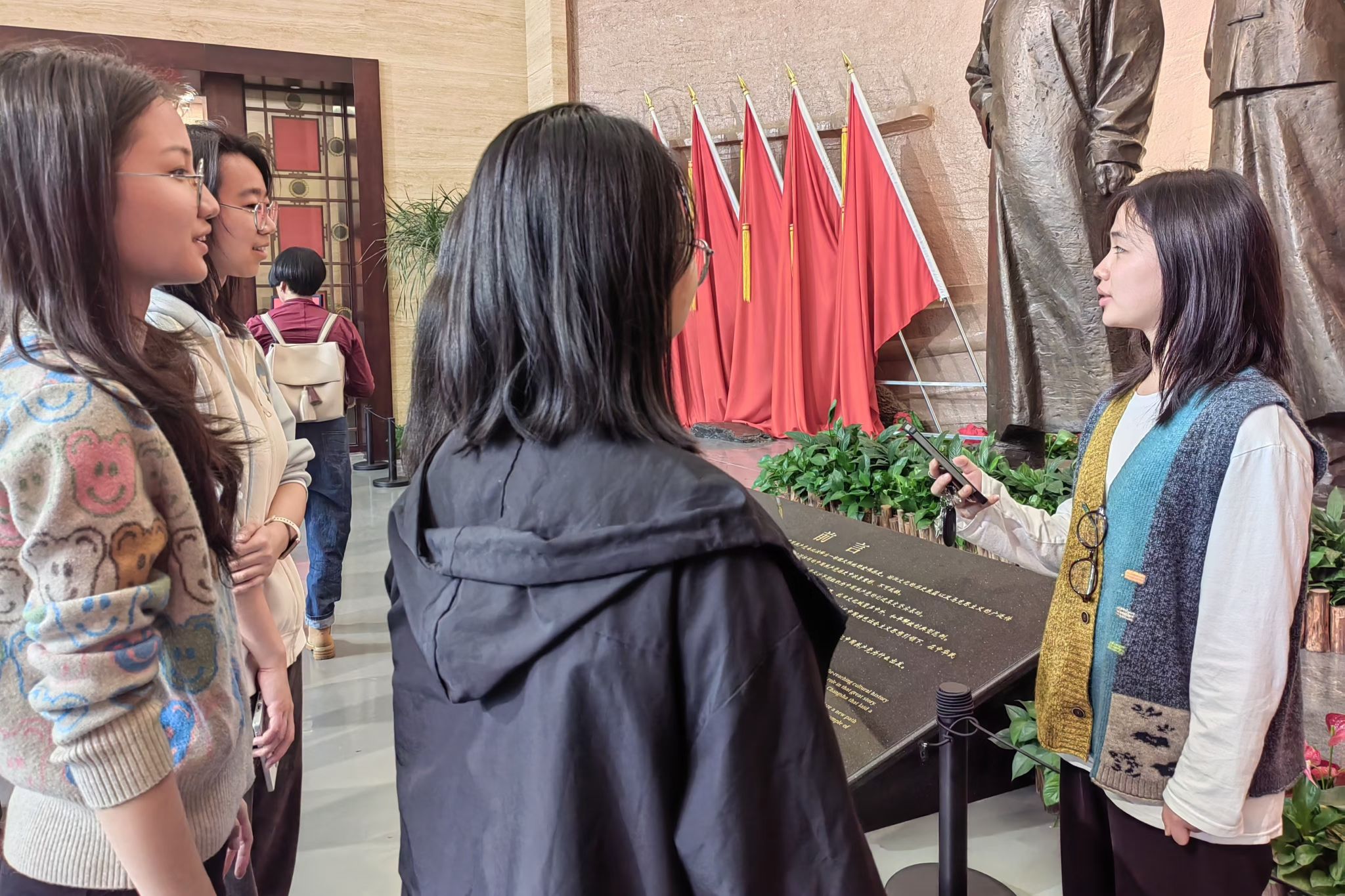 在纪念馆展览厅外,主讲人向支部成员介绍了毛泽东同志的系列著作,特别是《毛泽东选集》在中国革命历史上的重要地位及其对马克思主义中国化的深远影响。主讲人表示,《毛泽东选集》作为马克思主义中国化的经典成果和光辉篇章,很多篇目充满哲思和智慧,对于同学们学习生活的丰盈和思想境界的提升都具有重要意义。主讲人选取了《实践论》和《矛盾论》的两个片段与支部成员共读,带领成员从具体的文段中把握科学的思维方法和工作方法,学习中国共产党人的实践智慧。支部成员也针对书籍片段分享了自己的所思所感。分享结束后,支部成员一同进入中国共产党长沙历史纪念馆展厅内进行参观学习,走进中共湘区委会旧址,进一步感受中国共产党人的精神力量。
