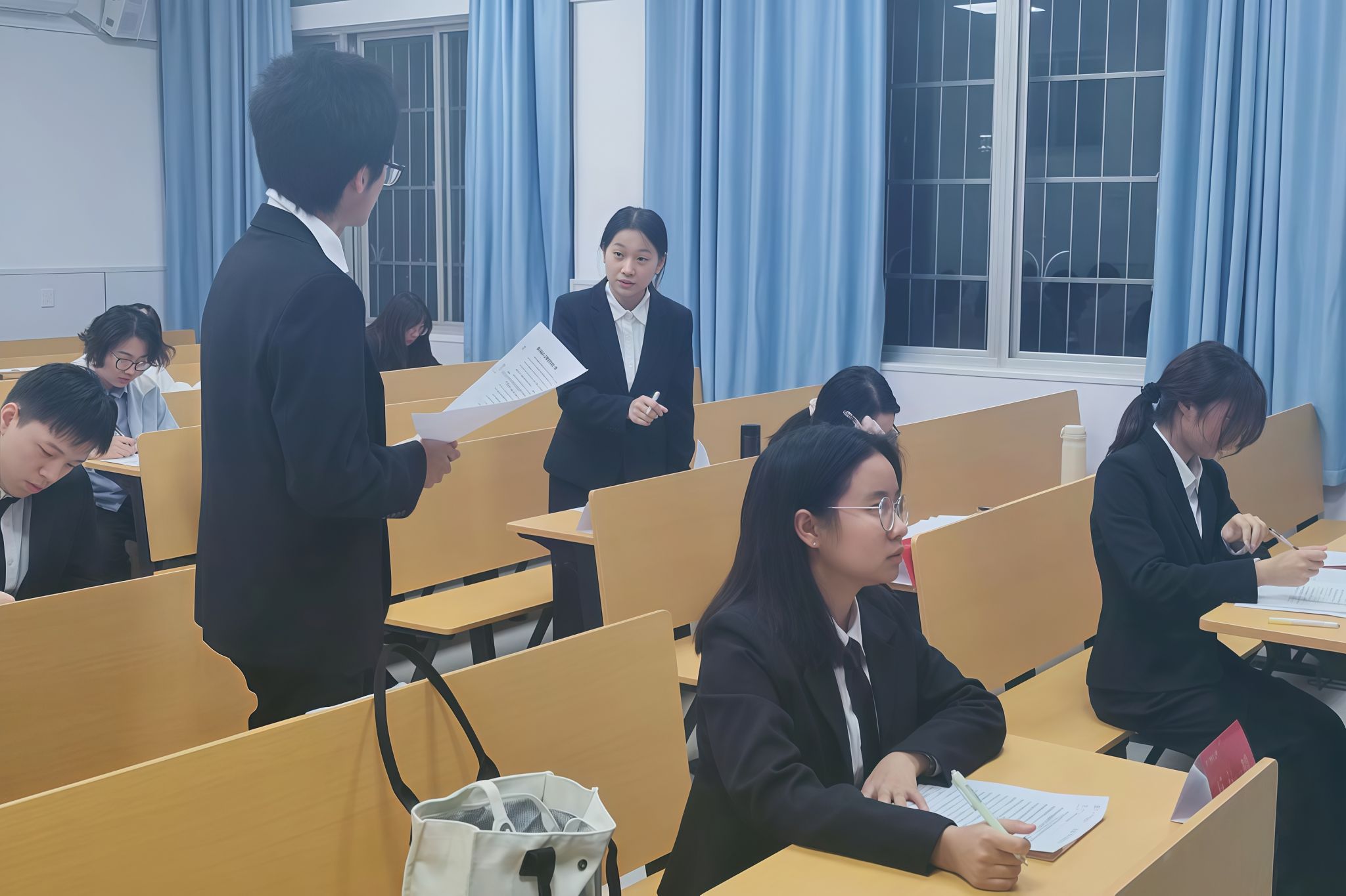 (通讯员:王淑贞 杨仕杰 盛若水)11月17日晚,公共管理学院(以下简称“公管院”)辩论队在景德楼中栋113教室参与我校2024年度“迎新杯”青年辩论赛八进四比赛。此次比赛中,公管院辩论队持方为正方,上场辩手为一辩万梓妍、二辩于汶、三辩申祥珍、四辩王瑀琢。物理与电子科学学院(以下简称“物电院”)持反方。此次比赛辩题为“把人生看作一场蓝图/冒险的人生态度更应该被追求”。