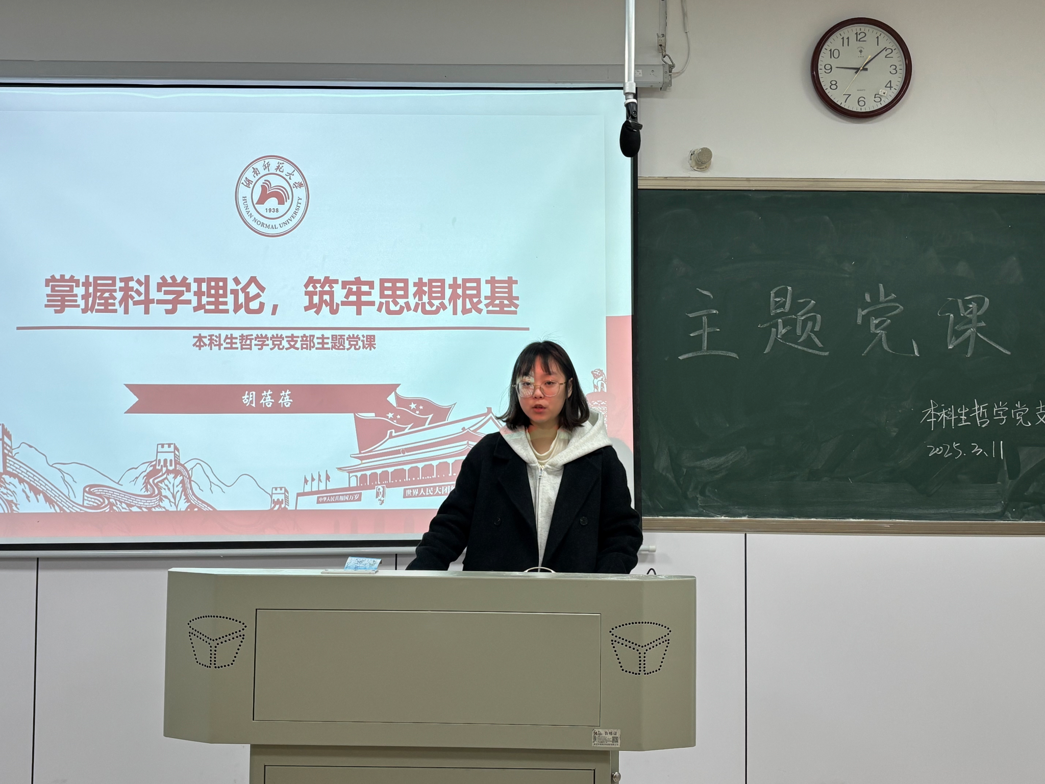 (通讯员 金亦榕 申祥珍 刘剑)为强化哲学党支部全体成员的思想修养,提升理论素养,3月11日晚,公共管理学院本科生哲学党支部(以下简称“哲学党支部”)在景德楼中栋110教室召开了“支部学生书记讲党课”活动。此次活动由哲学党支部学生书记胡蓓蓓主讲,哲学党支部全体成员积极参与。