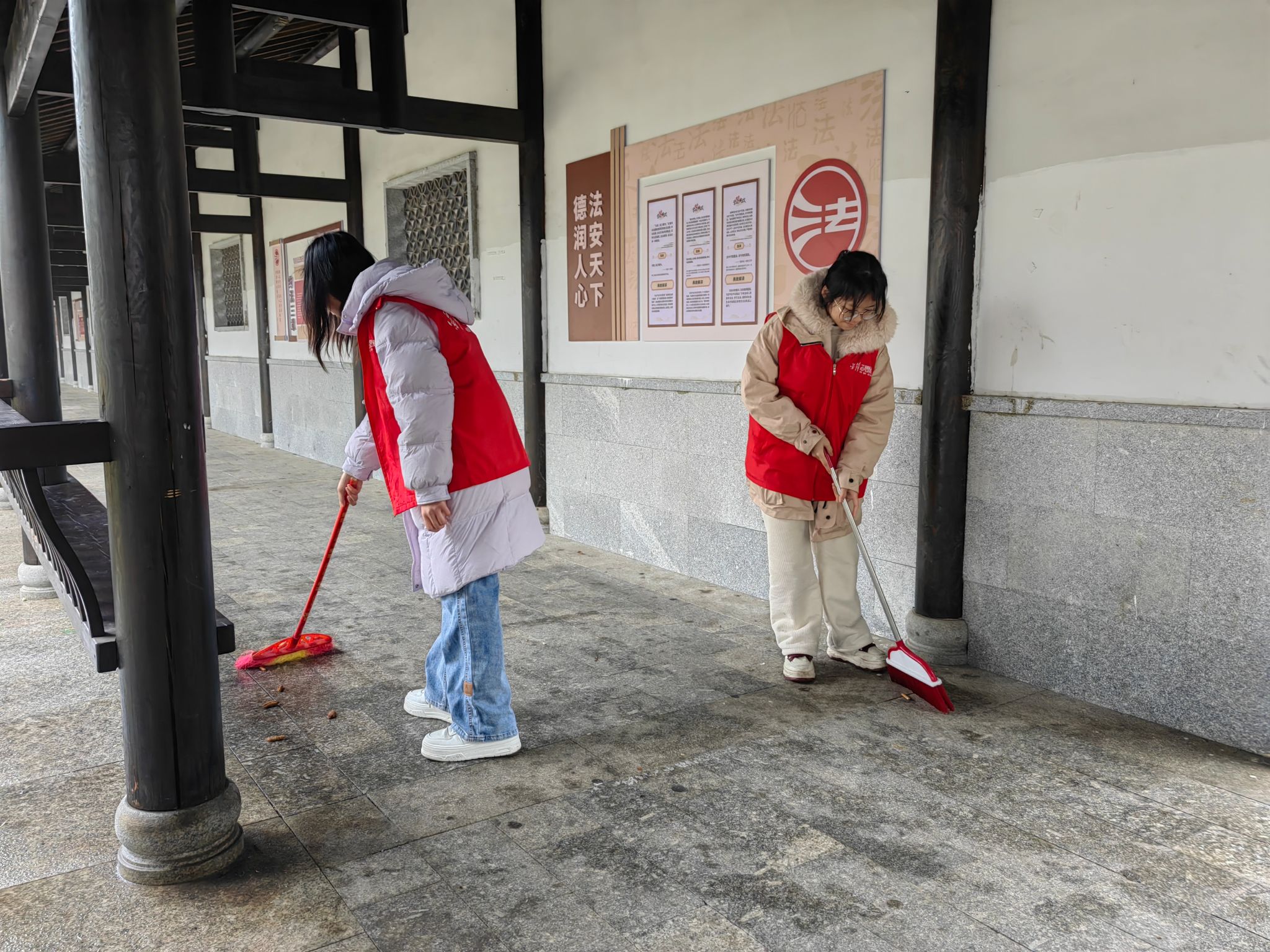 参与同学首先接受了志愿岗前培训,培训内容包括志愿服务的基本理念以及垃圾分类的基本知识。随后,同学们分组前往溁湾镇社区辖区内的杜家塘片区和溁湾桥片区进行楼栋清洁、卫生清扫等志愿服务。在清扫过程中,同学们与社区居民进行了亲切的交流,向他们宣传雷锋事迹与精神,鼓励他们将雷锋精神融入日常生活,为社区贡献自己的一份力量。清扫结束,参与同学与社区工作者合影留念。
