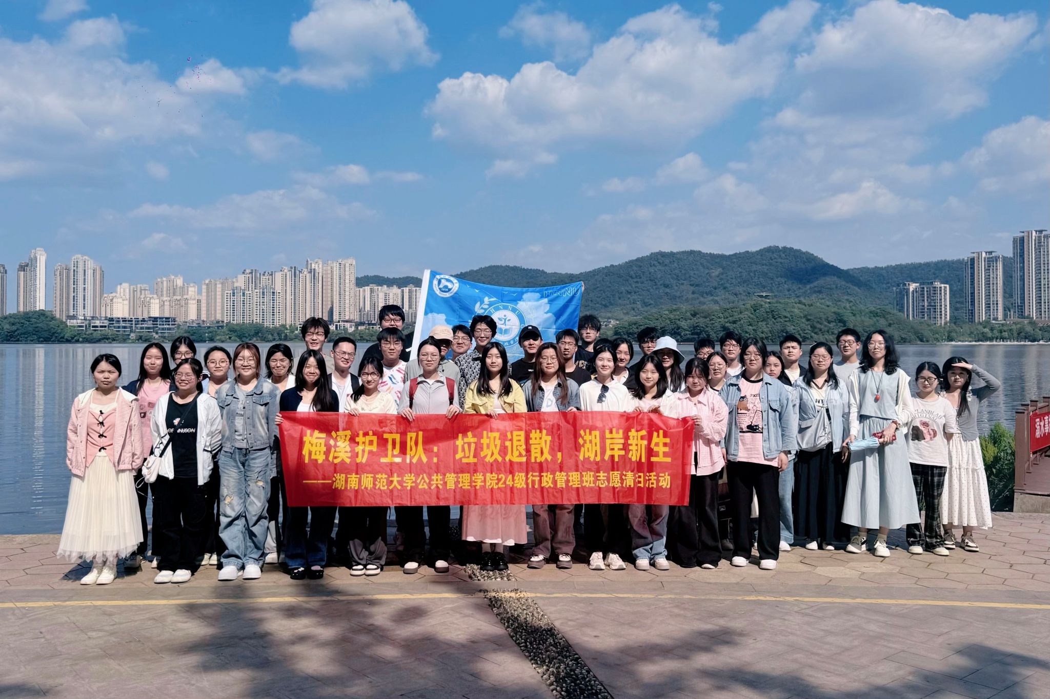 (通讯员 张惟斌 张逸婷 席子坤)4月25日下午,公共管理学院(以下简称“公管院”)2024级行政管理团支部组织同学们在梅溪湖公园开展了“梅溪护卫队:垃圾退散,湖岸新生”志愿清扫活动,以青春行动守护城市生态之美。