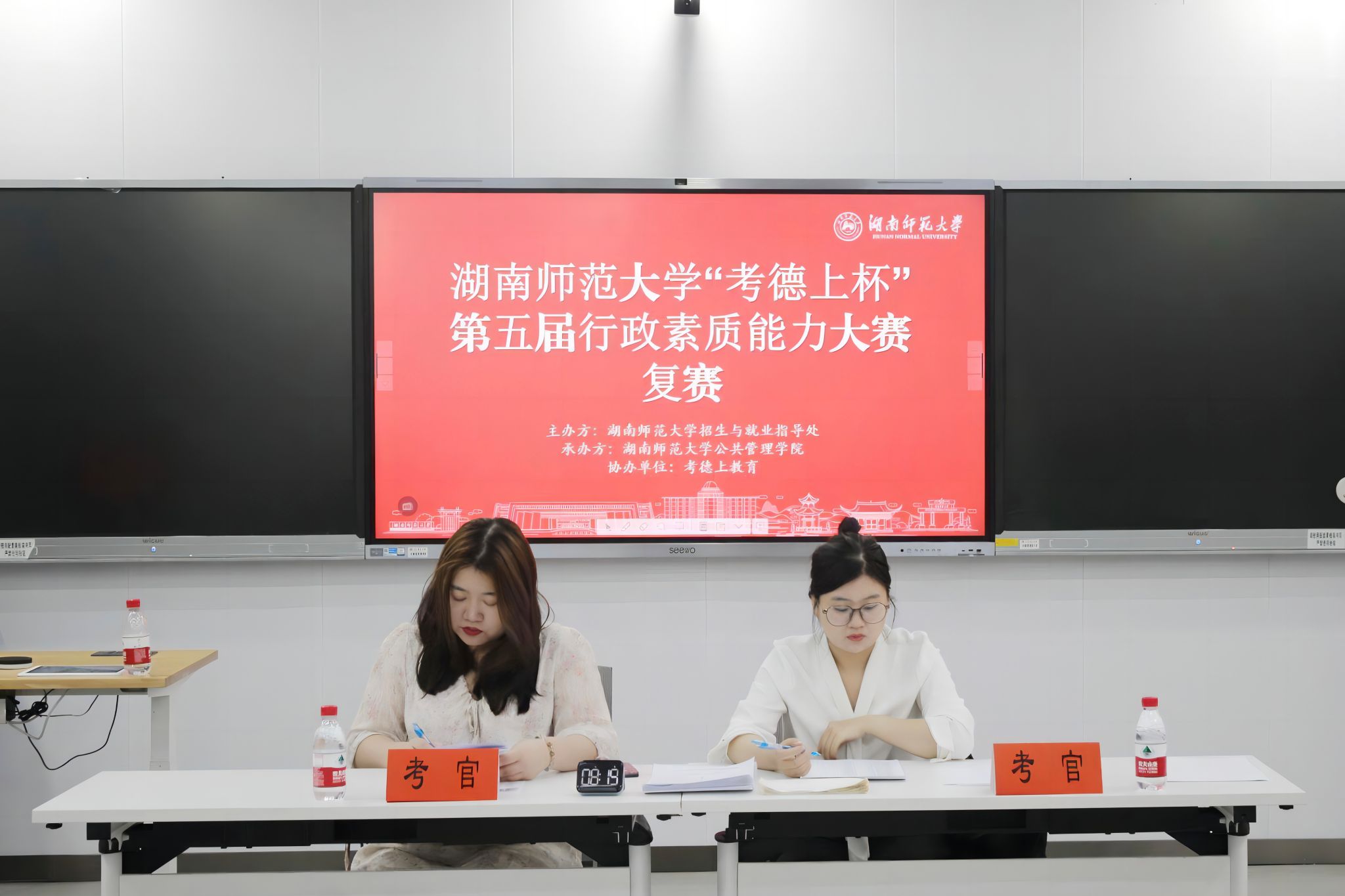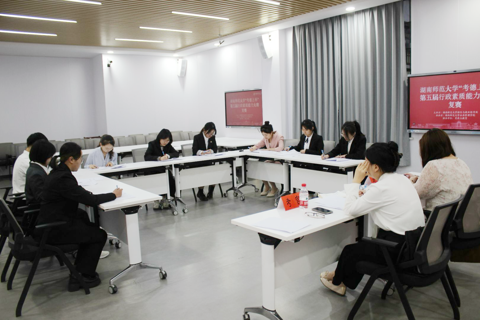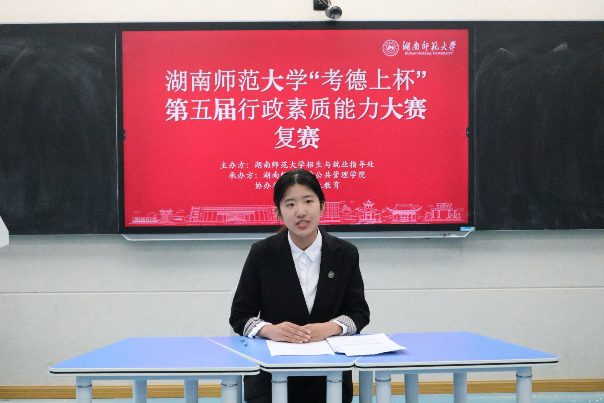 (通讯员 袁旭毅 张静然 盛若水)为促进同学们积极参与政务实践与研究、关注国家政策、了解政府工作,培养同学们的政治意识和社会责任感,5月11日,公共管理学院在景德楼中栋108教室和209教室举办湖南师范大学“考徳上杯”第五届行政素质能力大赛复赛。