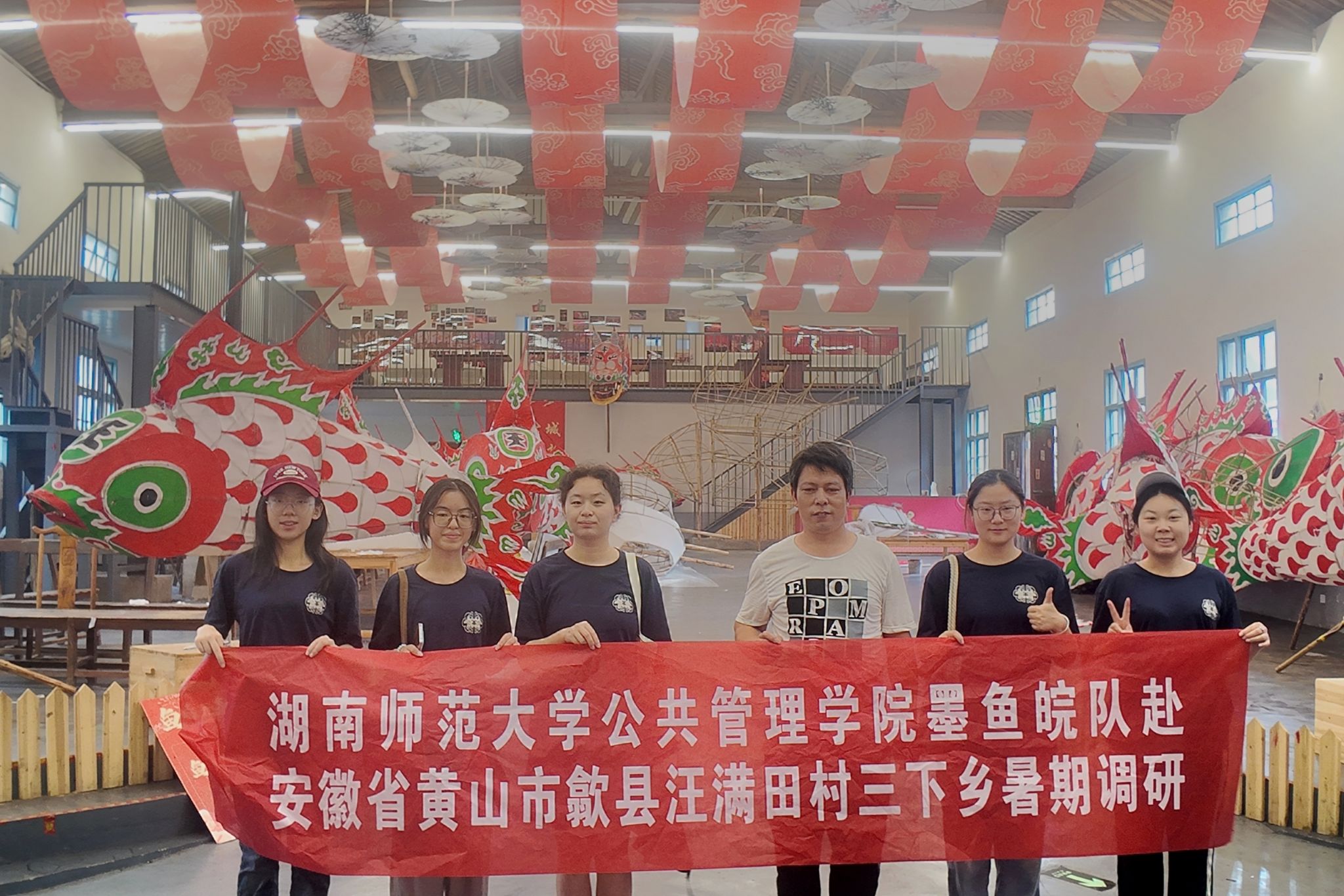 (通讯员 杨香桂 熊贤慧 谭欣雨)6月27日上午,公共管理学院“墨鱼皖队”三下乡暑期实践调研团(以下简称“调研团”)在安徽省黄山市歙县汪满田村开展座谈会。村党总支书记汪军华、队长胡健、鱼灯非遗传承人汪智红、汪华武受邀参加此次活动。