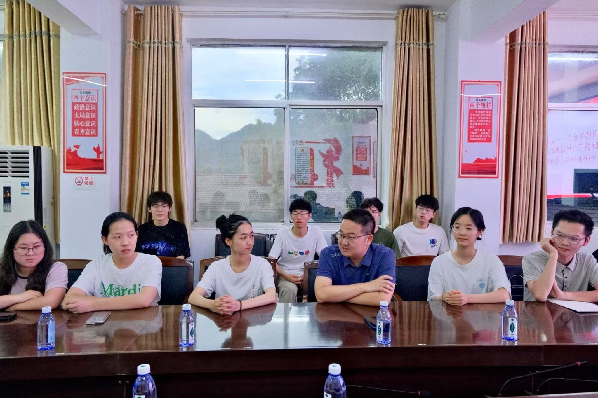 瞿理铜与谭顺环就凉水井镇的地理位置分布、人员流动数量、当地特色产业发展状况、教育教学质量和近年高考升学人数和相关情况展开探讨,这增进了队员们对凉水井镇的了解。吕曾南阐释百合村“百合”的具体含义为“百年好合”,百合村近年来大力发展婚庆产业,村委会预备在此基础上实现乡村发展的新业态。在交谈过程中,瞿理铜向队员提出要求,他期望队员们可以结合百合村的实际情况撰写调研报告,聚焦村镇重点产业,为产业发展注入新动能。同时,他也向队员们说明了安全的重要性,并鼓励他们团结协作,在实践中开阔视野、提升个人素养。