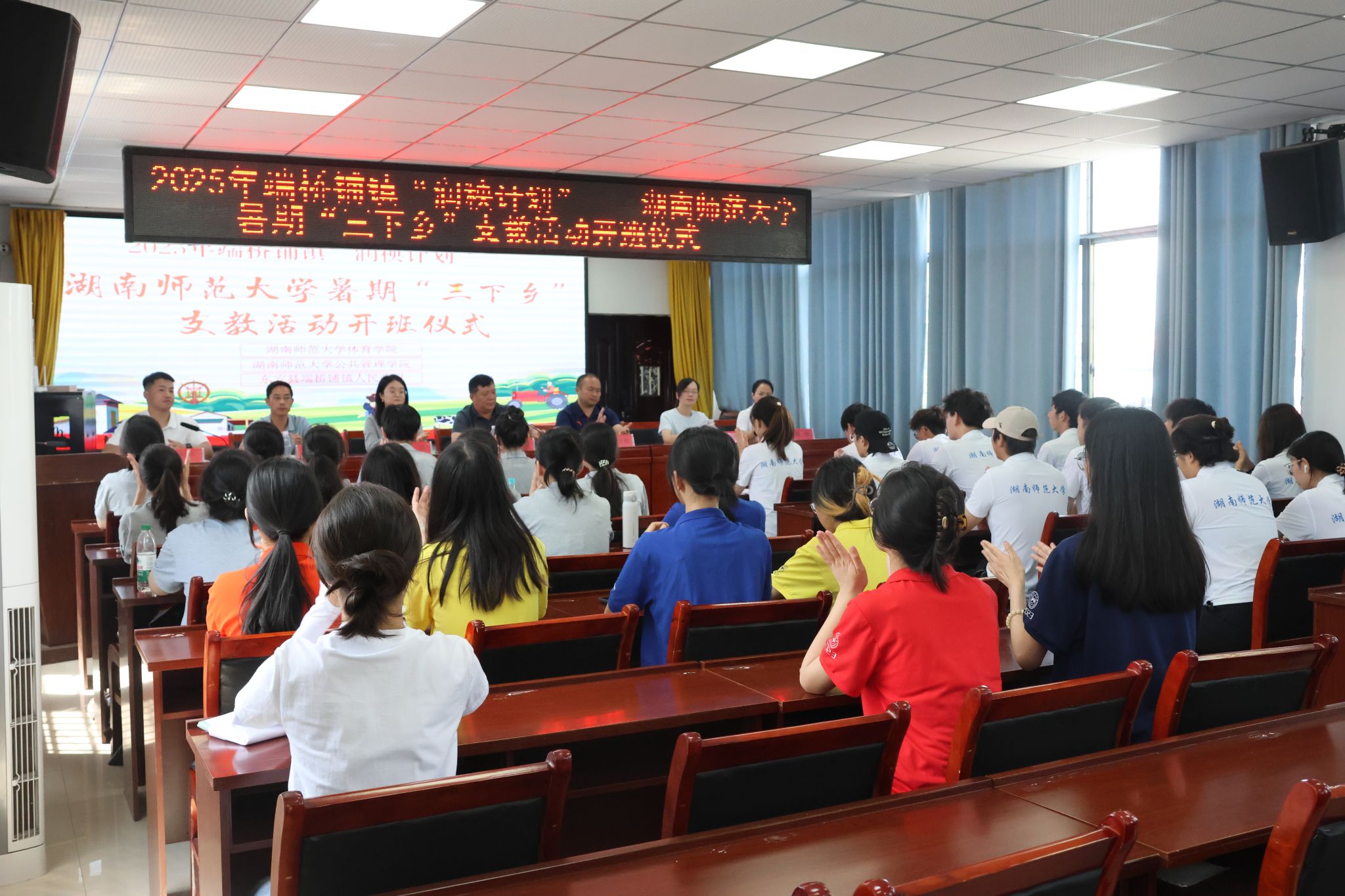下午,实践团举行了开班仪式,肖冬阳主持会议。东安县端桥铺镇党委书记张学军、公管院政治学与行政管理系教师贺立等领导嘉宾以及38名志愿者参与此次会议。会上,张学军强调五育并举,鼓励实践团优化工作安排,贺立对实践团提出期许。志愿者代表张莹全面介绍课程内容、调研安排、及各色活动设置。