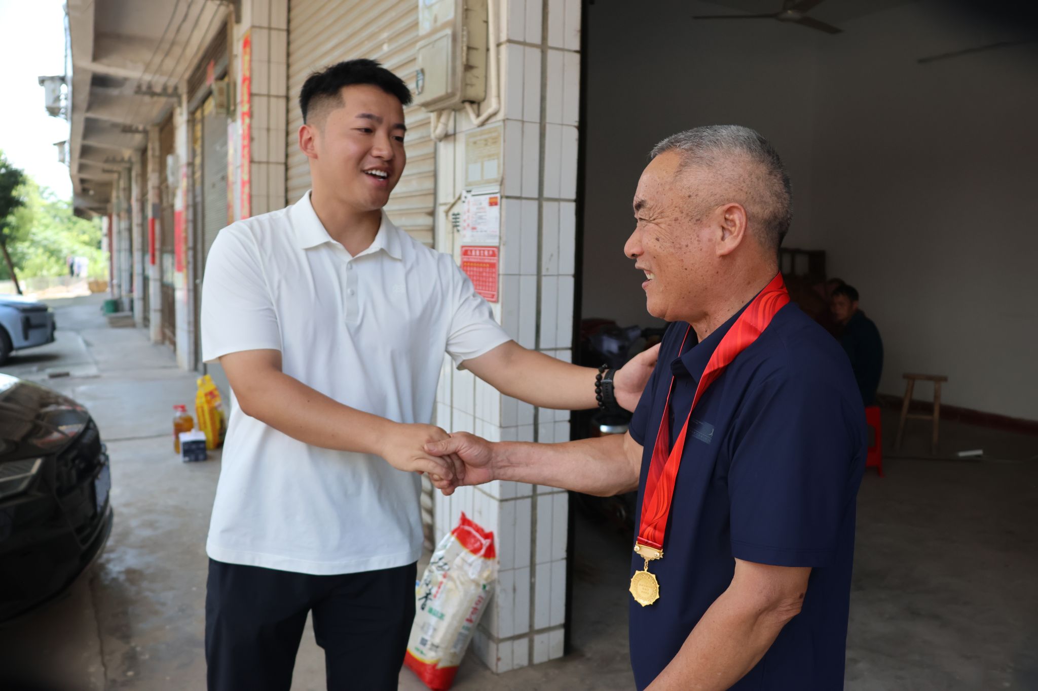 (通讯员 赖婕妤 杨雅甄 盛若水)7月1日上午,湖南师范大学公共管理学院(以下简称“公管院”)“护鸟营”赴永州市东安县端桥铺镇暑期社会实践团(以下简称“实践团”)在当地主席肖冬阳的带领下,专程走访慰问了老兵罗丙云、曾宪祥、陈建国。肖冬阳亲切地问候他们,学生代表黎猜郑重地为他们佩戴光荣在党50年纪念章。最后合照留念。