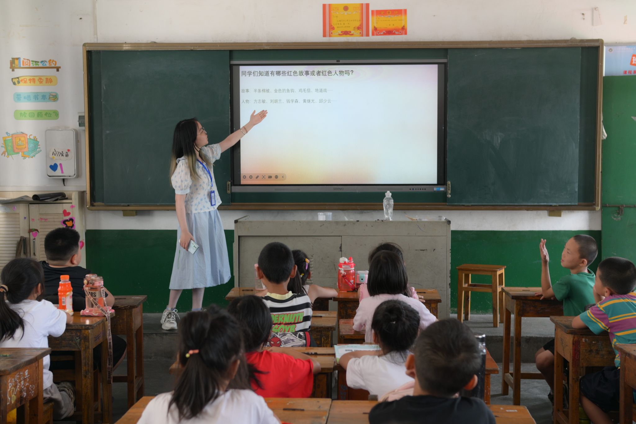 (通讯员 李苗 刘宇勋 谭欣雨)7月9日,我校公共管理学院“抬起头来,拥抱世界”暑期社会实践团在端里完全小学开展红色论坛系列课程。实践团成员分赴各班级,围绕红色历史、红色电影赏析、红色英雄事迹及红色故事等主题,为学生带来红色教育课。