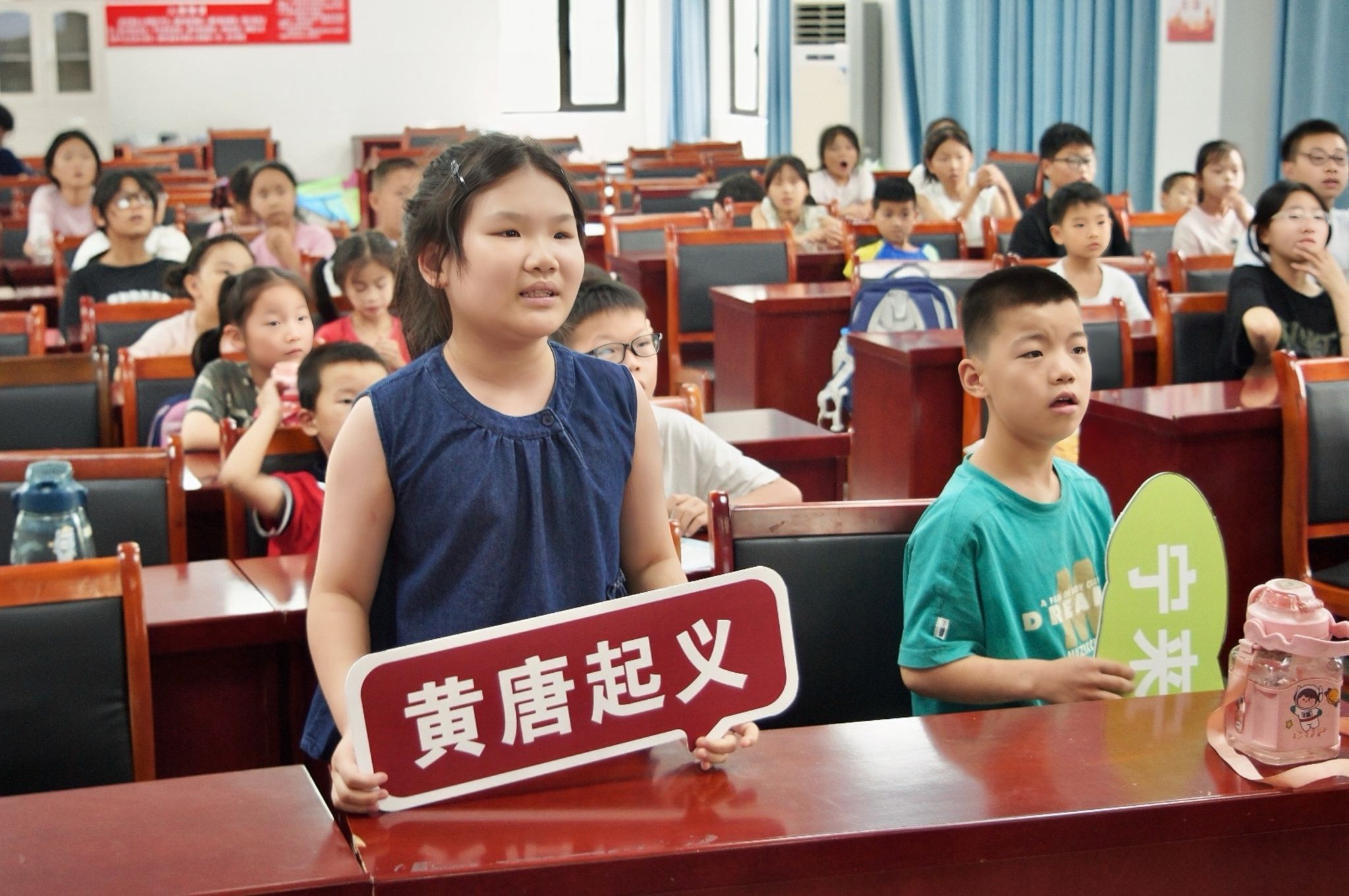在知识互动环节,冷宣坪采用问答的形式,引导孩子们深入思考,强化知识记忆,帮助他们系统了解石山村深厚的红色历史文化底蕴。在“今日勇敢小事”分享环节中,孩子们踊跃发言,纷纷讲述自己生活中展现勇气的小故事,并在纪念横幅上写下姓名与事迹,以实际行动传承革命先辈不畏艰难、勇毅前行的精神品格,诠释起义军勇毅果敢的精神品质,展现新时代青少年的责任意识与精神风貌。