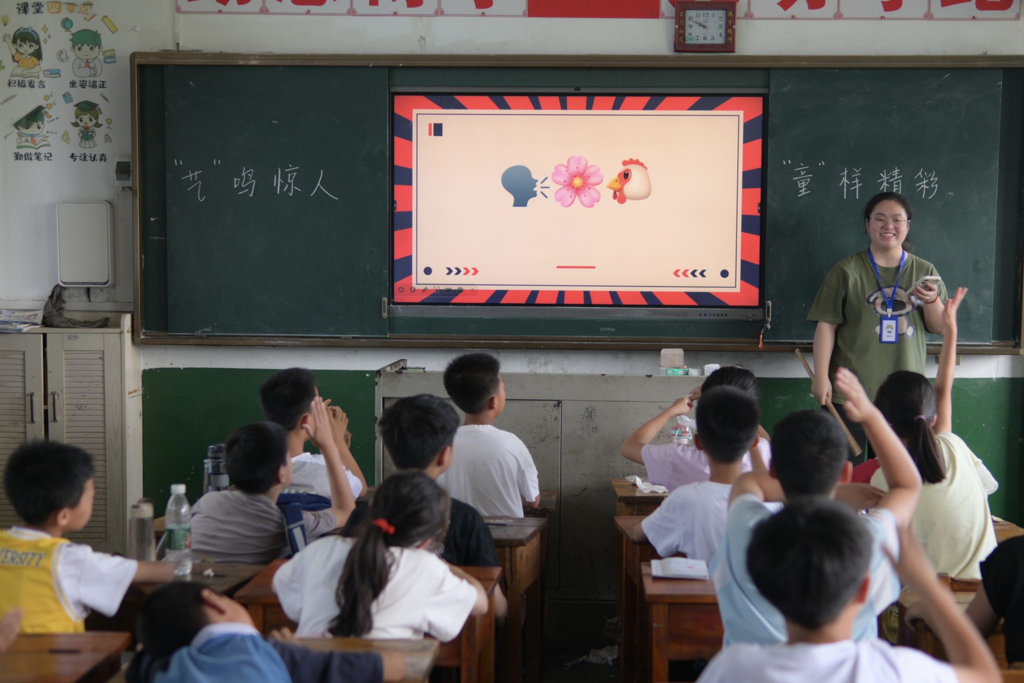 (通讯员 李苗 柴玥琪 谭欣雨)7月15日,公共管理学院“抬起头来,拥抱世界”暑期社会实践团(以下简称“实践团”)在端里完全小学开展了以“‘艺’鸣惊人,‘童’样精彩”为主题的益智趣味游戏课堂。此次课堂旨在突破传统讲授模式,通过互动引导乡村学子在寓教于乐中主动思考、拓展思维,感悟中华诗词与成语的隽永魅力,让文化自信的种子在轻松氛围中萌发。