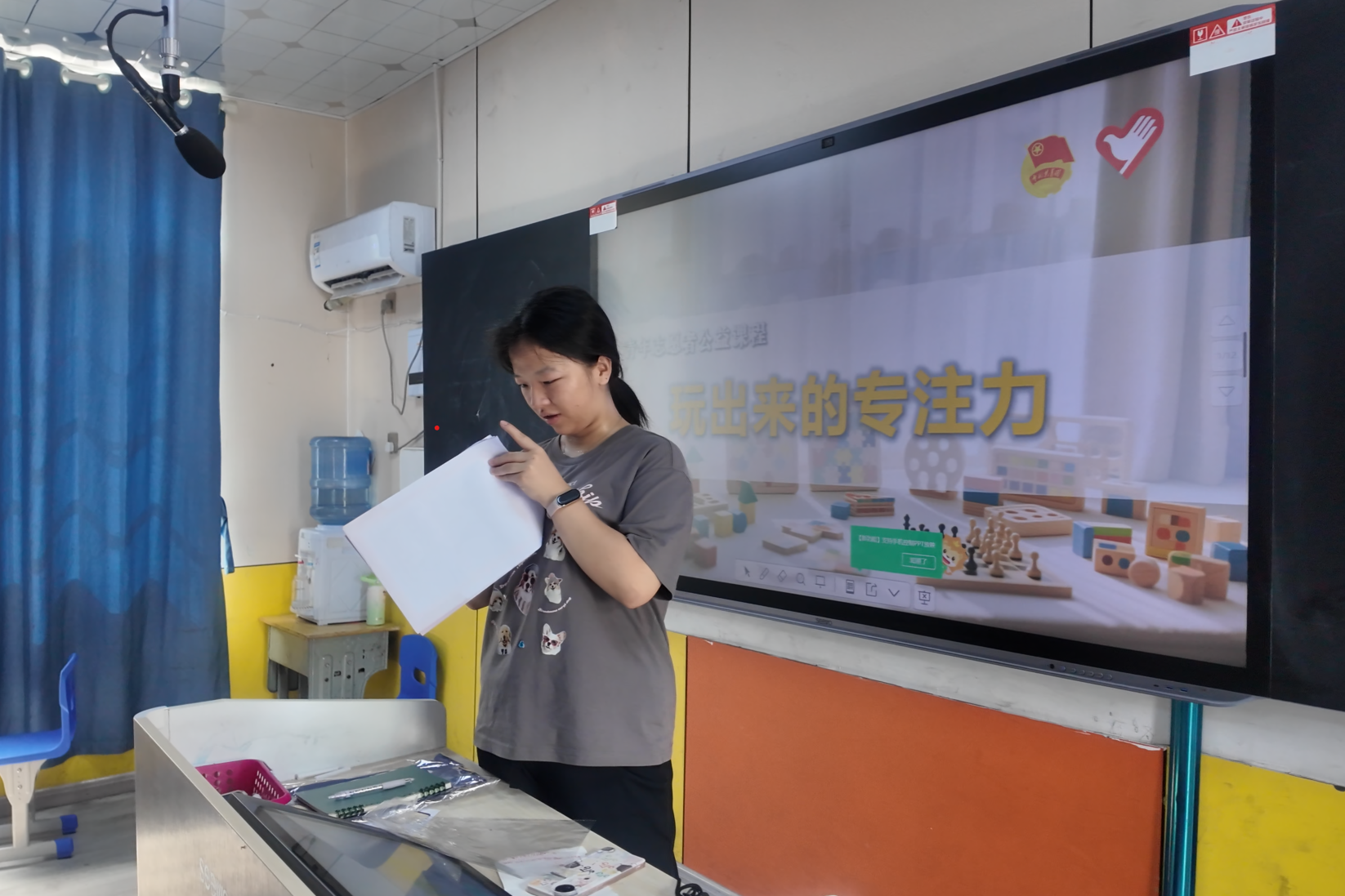 实践团成员为小朋友们专门设计了“玩出来的专注力”课堂,通过精心设计的游戏训练,利用“舒尔特方格”,要求小朋友们快速按序查找数字,有效锻炼了他们的视觉广度、搜索速度及注意力的集中与稳定。