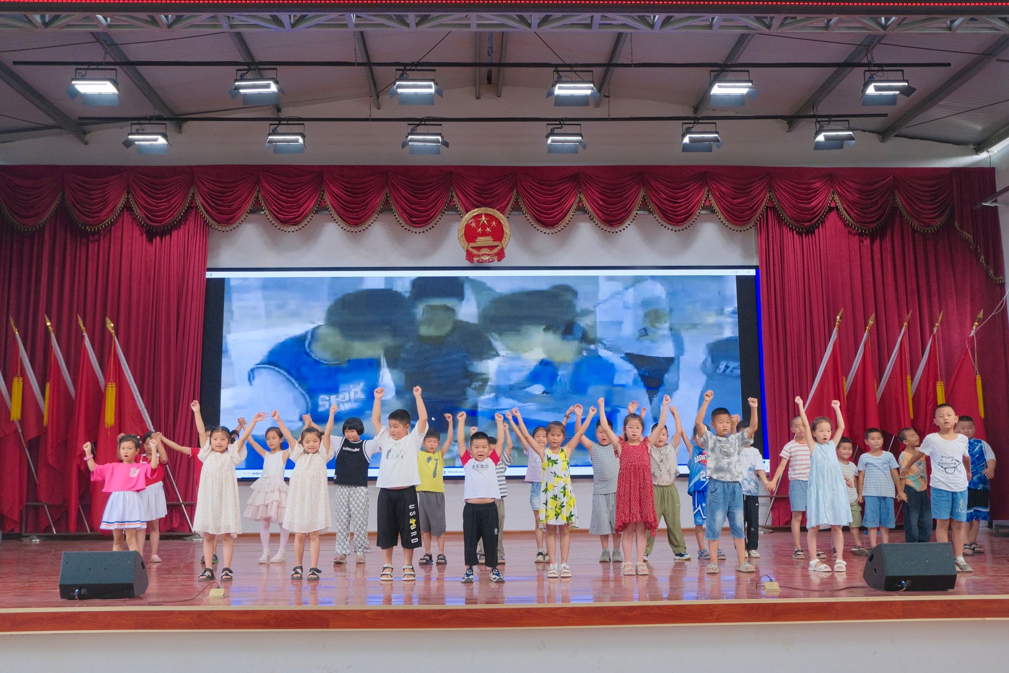 结营仪式以纪录耕梦者联盟整个暑期社会实践活动的影片开场。小班和大班的孩子们依次表演合唱节目《左手右手》、《萱草花》,调动现场的气氛,向在场家长展示他们的成果和进步。耕梦者联盟全体成员表演歌曲《稻香》。在歌曲间奏中,实践团成员辅以朗诵,表示对这段美好时光的不舍与怀念。表演结束后,队长刘敏佳总结实践成果,阐述实践团在凉水井镇中心小学的教学情况。家长代表佘娟分享孩子在夏令营期间的收获与成长,她认为此次夏令营为当地孩子们提供了开拓视野、体验多彩课堂的机会,并对实践团的辛勤付出致以衷心的感谢。张悦肯定实践团的教学成果,她鼓励在场孩子们向实践团成员学习,争取能够在未来考上心仪的大学,成为投身实践、敢于担当的有志青年,回到家乡为振兴乡村教育的事业作出贡献。
