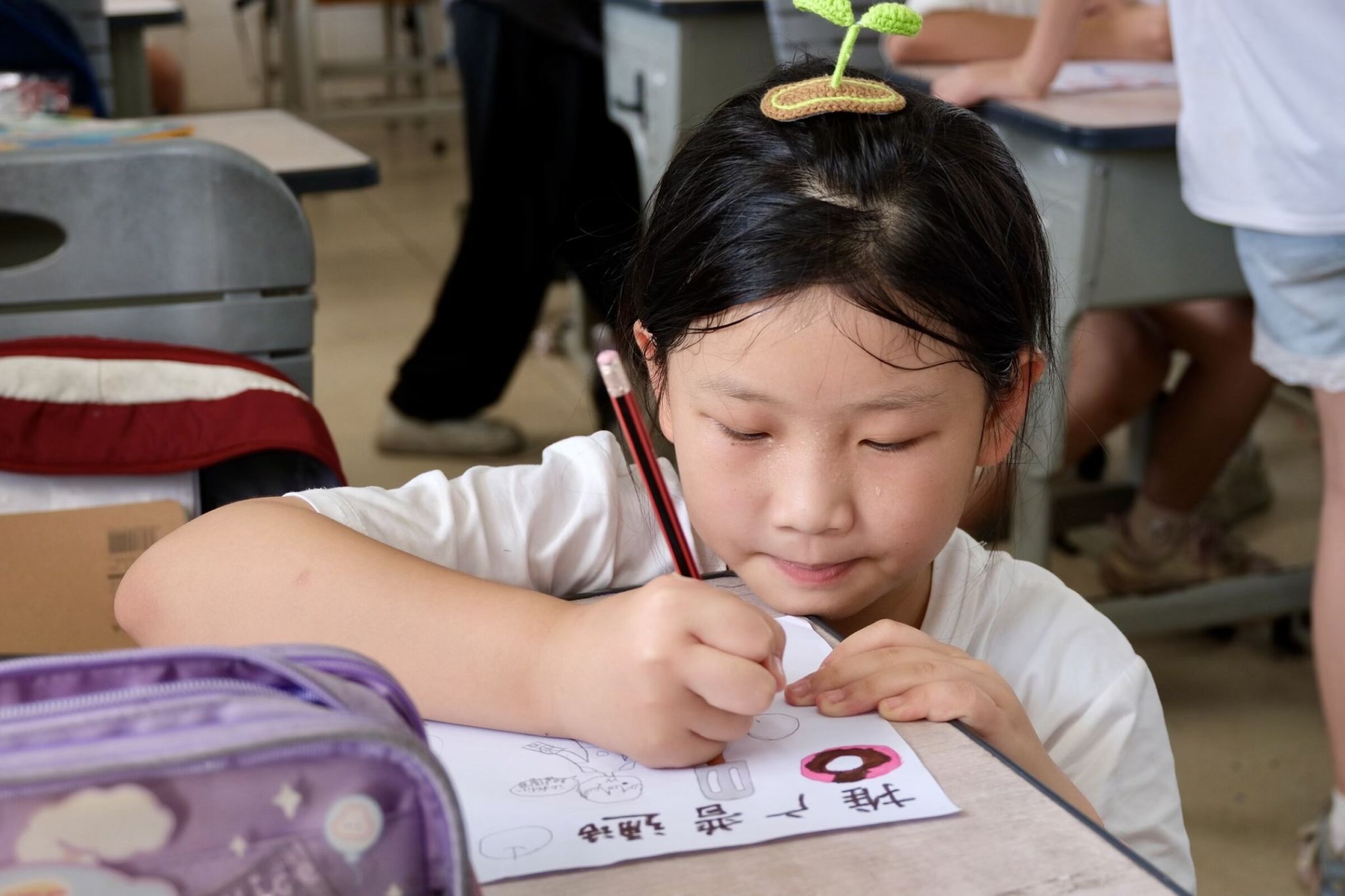 线下,实践团成员精心设计了一系列浸润式趣味活动,让普通话学习在生动互动中焕发独特魅力,如《大学》《中庸》导读、辩论启蒙课、制作手抄报和手工拼贴诗活动等。此外,实践团成员还走村串户进行推普主题调研,发放由教育部语言文字应用管理司、共青团中央青年发展部监制的推普宣传手册,累计覆盖华中小学周边200余户家庭。