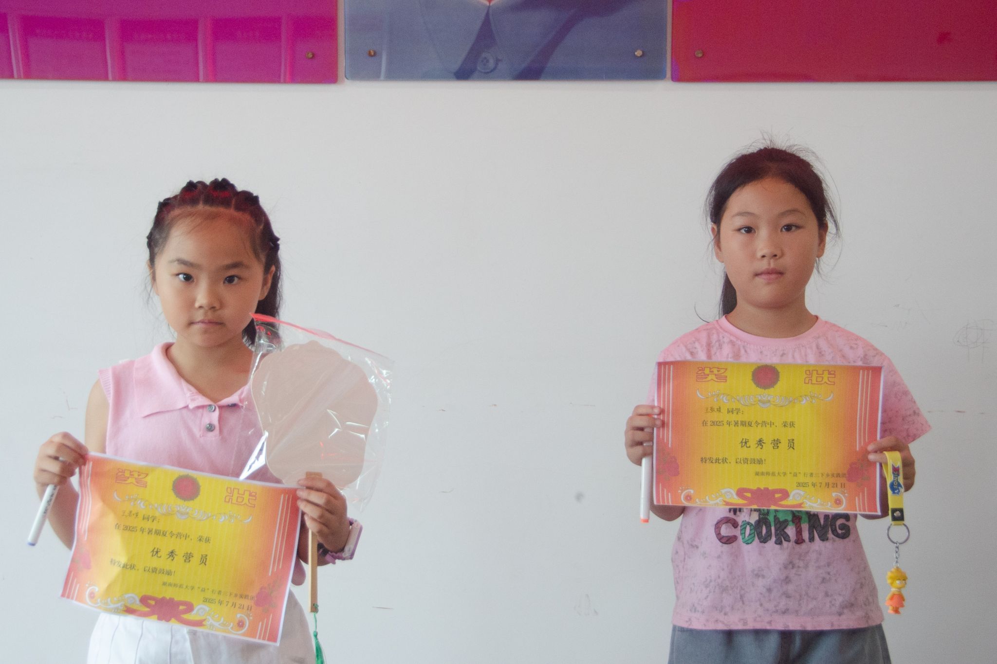 演出中场举行了颁奖仪式,实践团为表现突出的同学颁发奖状和奖品,肯定了他们在夏令营中的积极参与和出色表现。这些奖品不仅是对孩子们努力的肯定,更是对他们未来成长的激励。