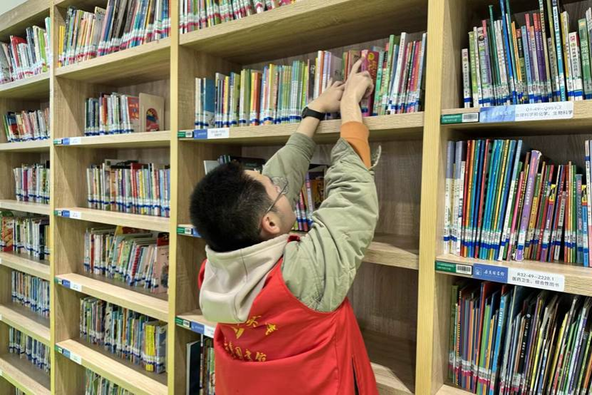 活动期间,志愿者分为两组,分别负责儿童阅读区与文学区的书籍整理工作。大家认真核对编号,将陈旧图书下架,把读者遗留书籍归位,使书架焕然一新。志愿者默契配合,展现了高度的责任感和团队精神。此外,针对孩子们对图书相关问题的提问,志愿者们耐心解答,帮助孩子们找到自己想要的书籍,并加深其对图书的认识,助力孩子们增长知识。