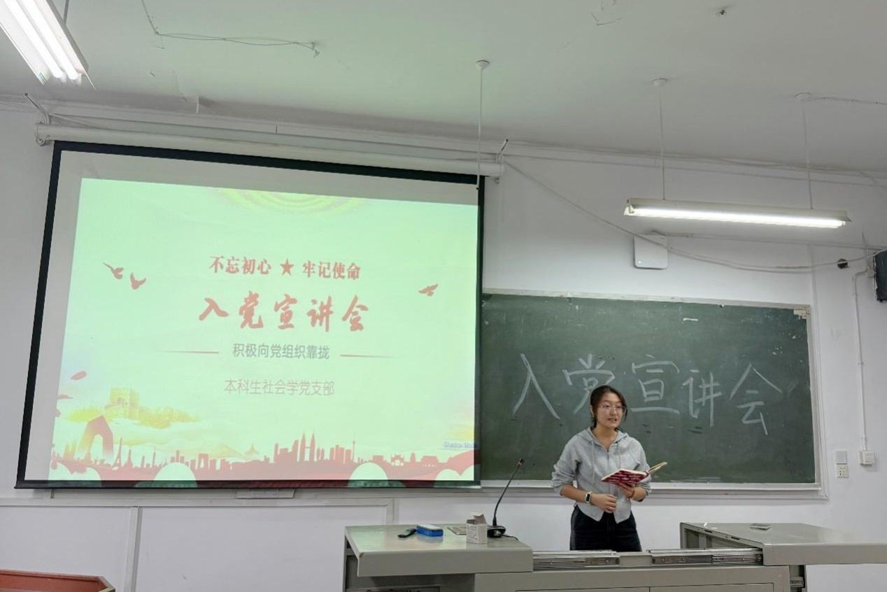 (通讯员 王君青 张茎沂 盛若水)9月18日下午,为使25级社会学新生了解入党流程、坚定入党动机,公共管理学院(以下简称“公管院”)本科生社会学党支部于张公岭校区教学楼201教室开展入党宣讲会,王君青担任本次主讲人。