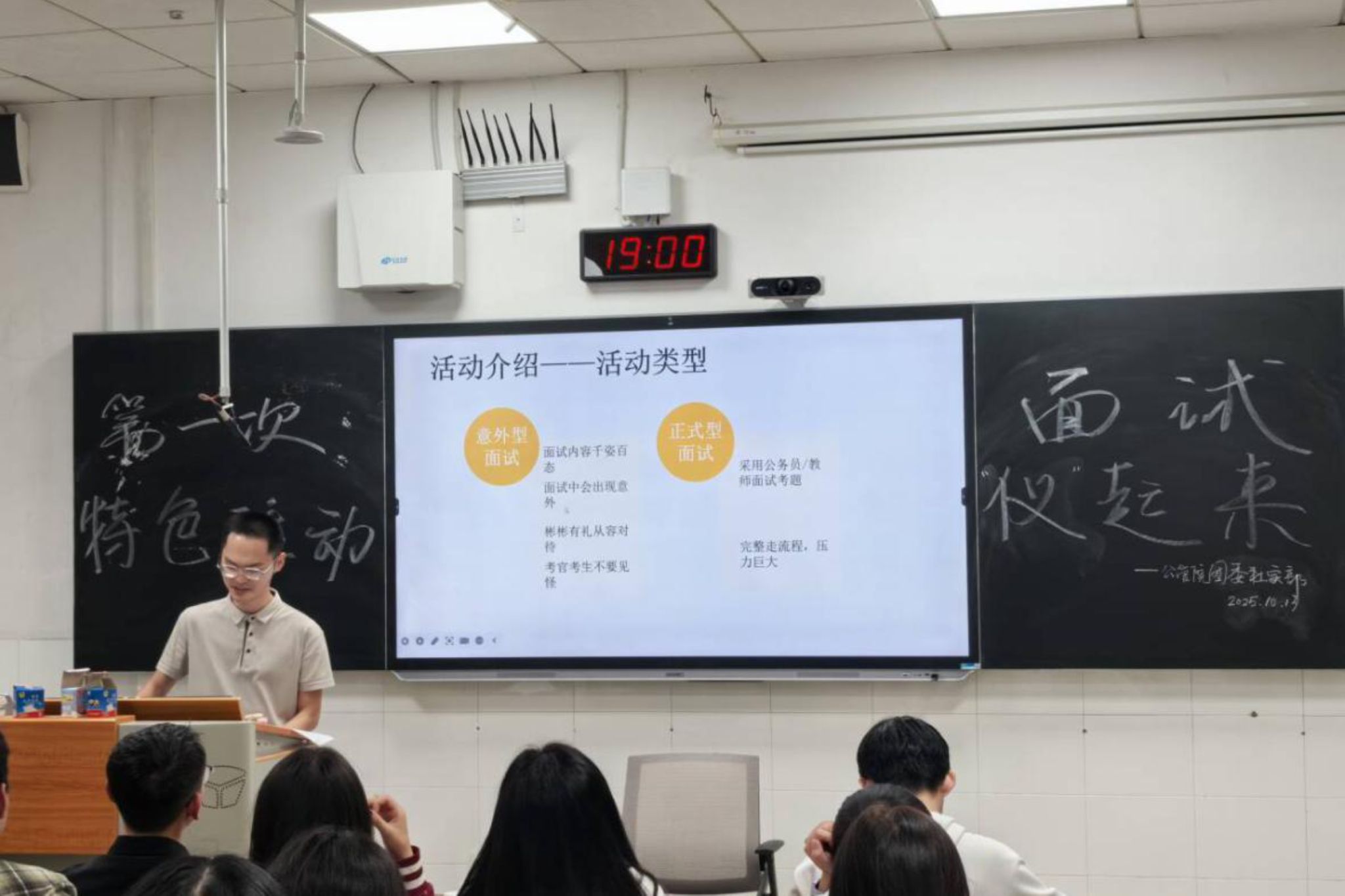 (通讯员 张佩研 陈珏嵘 王一诺)为帮助同学们提前熟悉职场面试流程、提升公关礼仪素养与应变能力,10月13日晚,公共管理学院团委社会实践部(以下简称“社实部”)于至善楼115教室举办了公关礼仪课程第一次特色活动——面试“仪”起来。此次活动由社实部陈珏嵘主持,社实部负责人以及所有选修公关礼仪课程的学生参加。