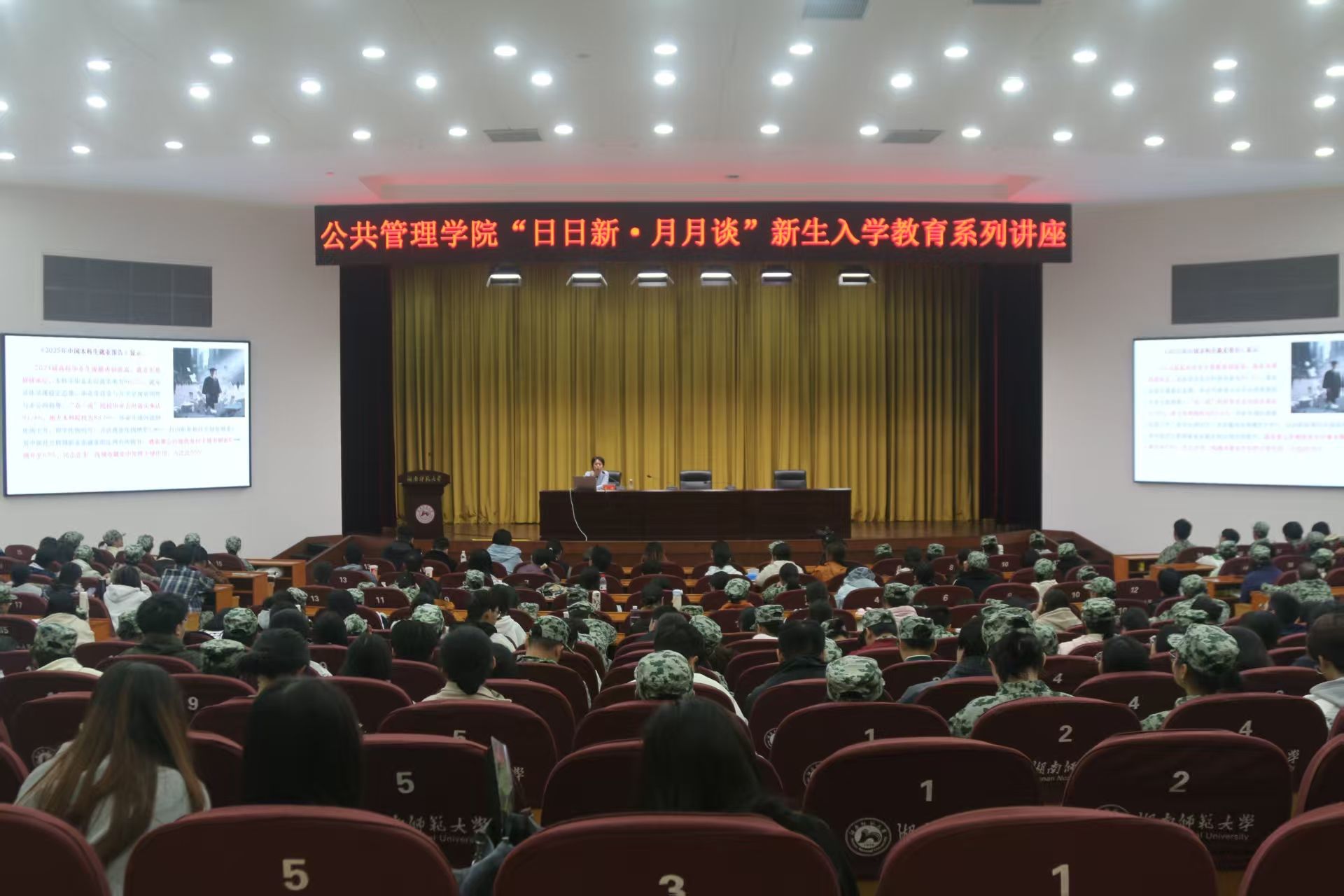(通讯员 谭欣雨 周涵韵)为帮助2025级本科生尽早明确发展方向,科学规划大学生涯,10月22日上午,公共管理学院在国际学术报告厅举办了以“如何在考研和高质量就业中脱颖而出”为主题的讲座,该讲座是我院“日日新·月月谈”新生入学教育系列讲座的第二讲,由学院副院长、博士生导师苏静教授担任主讲人,学工办团委负责人申峰铭老师主持,252名本科新生及30名哲学基地班学生参加活动。