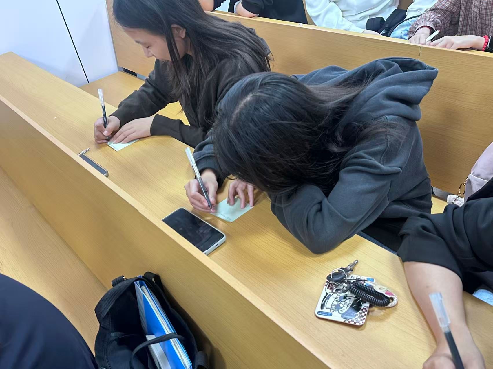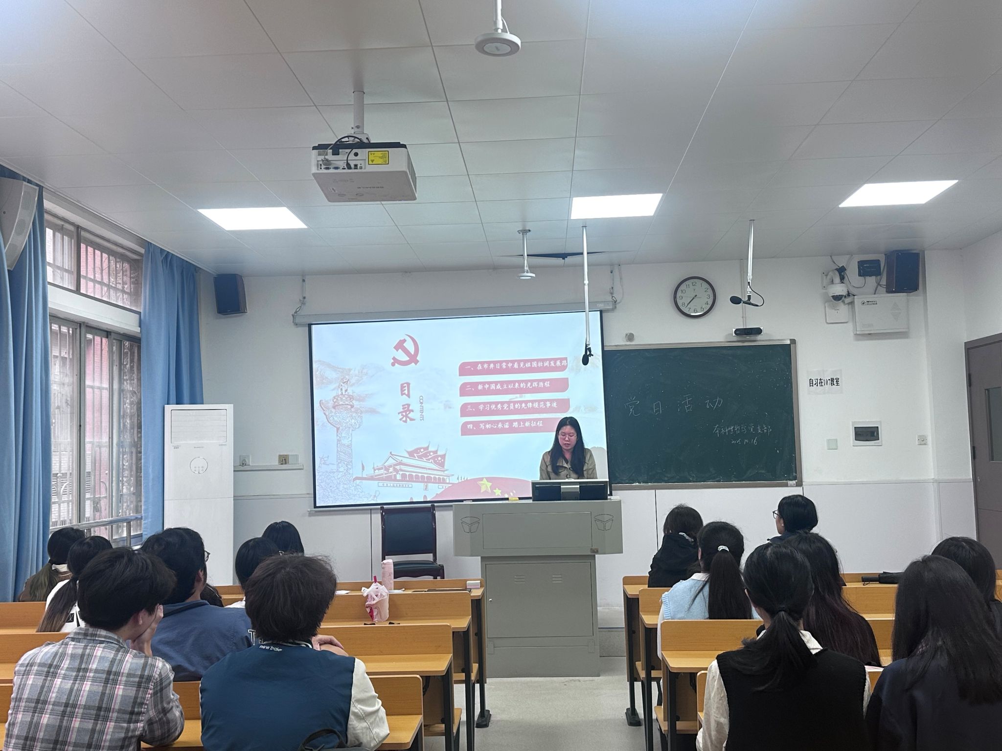 活动中,策划人周涵韵通过几个贴近市井生活的情景小剧场,展现了祖国在太空探索、疾病防控、交通网络建设以及反腐败治理等方面的巨大进步。从神舟五号首次载人航天到神舟二十号成功发射,从“八横八纵”高铁网的质量提升到花江峡谷大桥的“桥旅融合”模式,每一个成就都彰显了中国的速度与精度,让支部成员深切感受到了国家现代化建设的蓬勃生机。支部成员还学习了“草鞋书记”杨善洲、“种粮标兵”徐淙祥以及“最美志愿者”吕明玉的优秀事迹。他们的故事激励着每一位支部成员,要常怀赤子之心,恪守为民之意,对标模范争做先锋,为强国建设、民族复兴贡献自己的力量。活动最后,支部成员在便利贴上郑重写下了自己的初心承诺,并标注了完成进度和意愿强度。这些承诺不仅是对个人目标的设定,更是对党和人民事业的庄严承诺。