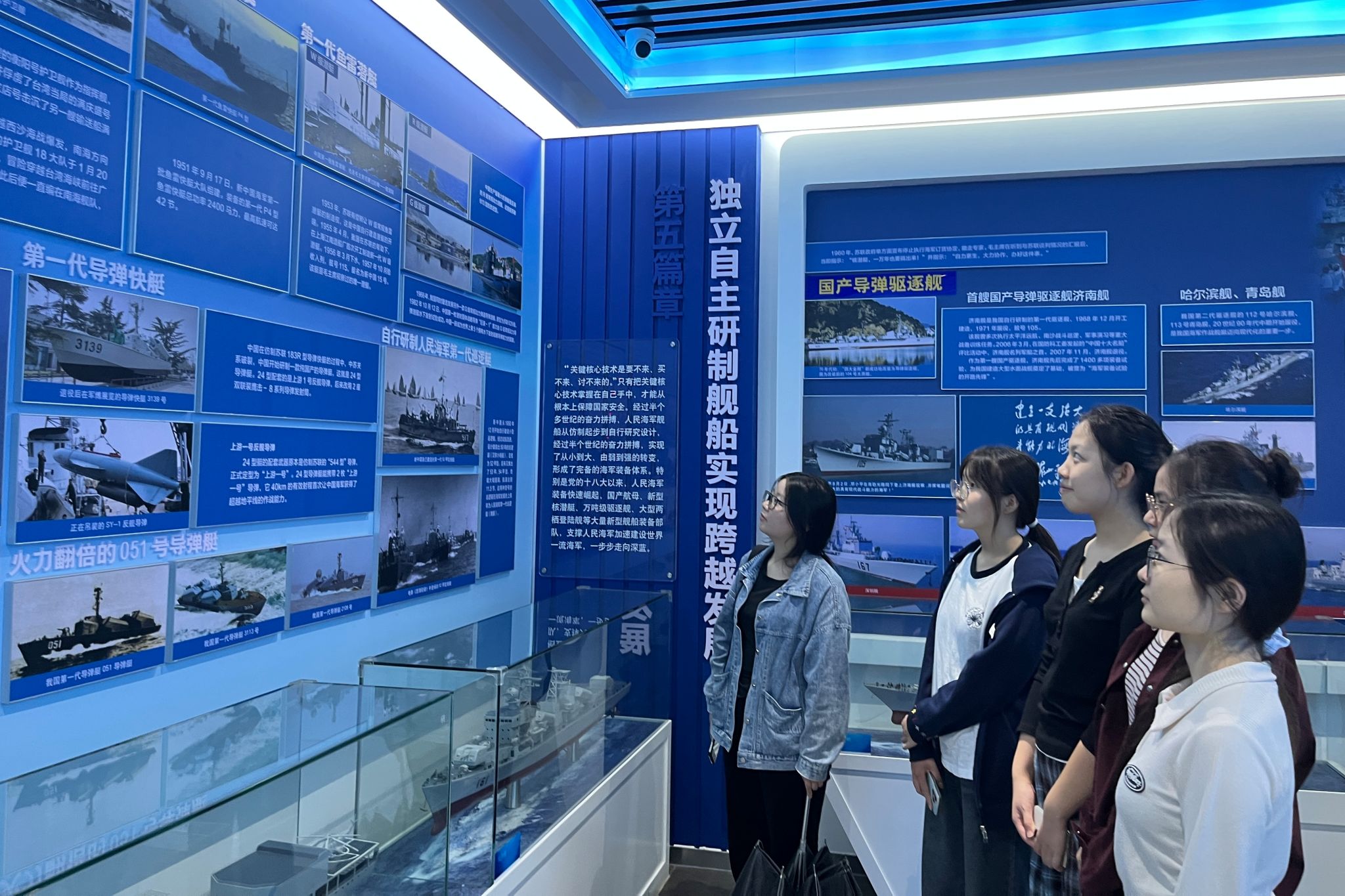 在近现代海军装备主题展馆内,党支部成员借助舰船模型、图文史料及互动体验项目,直观感悟人民海军从无到有、由弱至强的艰辛发展脉络,同时清晰认知到我国海军捍卫国家主权与海洋权益的坚定立场和硬核实力。