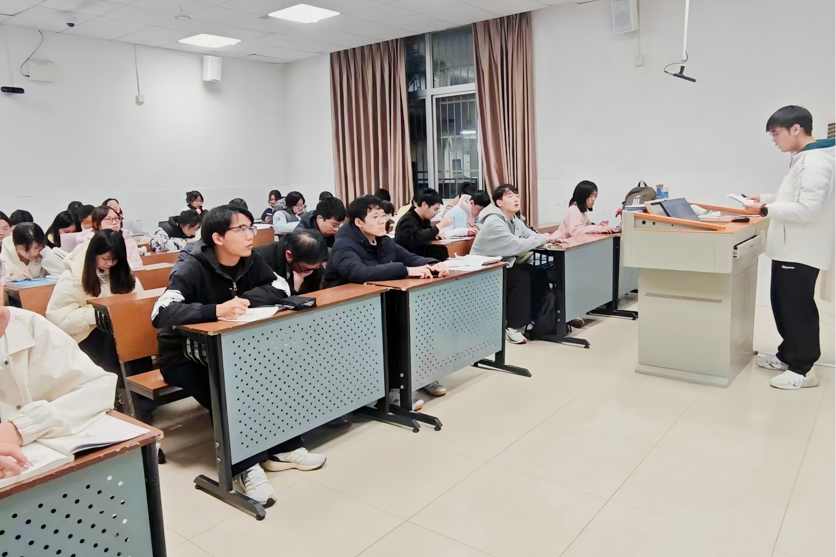 此次活动由刘晨昊主持,他带领着同学们从欧洲出发,到北美洲、大洋洲,再到亚洲地区,分别阐释了不同地区的不同礼仪。为了加深记忆,活动采取抽取礼仪盲盒的形式。通过活动设计,同学们切实体验课堂中提及到的礼仪内容以及违反礼仪规范的尴尬场面。活动最后,刘晨昊进行结课总结,他希望公关礼仪课程能够帮助同学们更好掌握礼仪,更好处理人际关系。