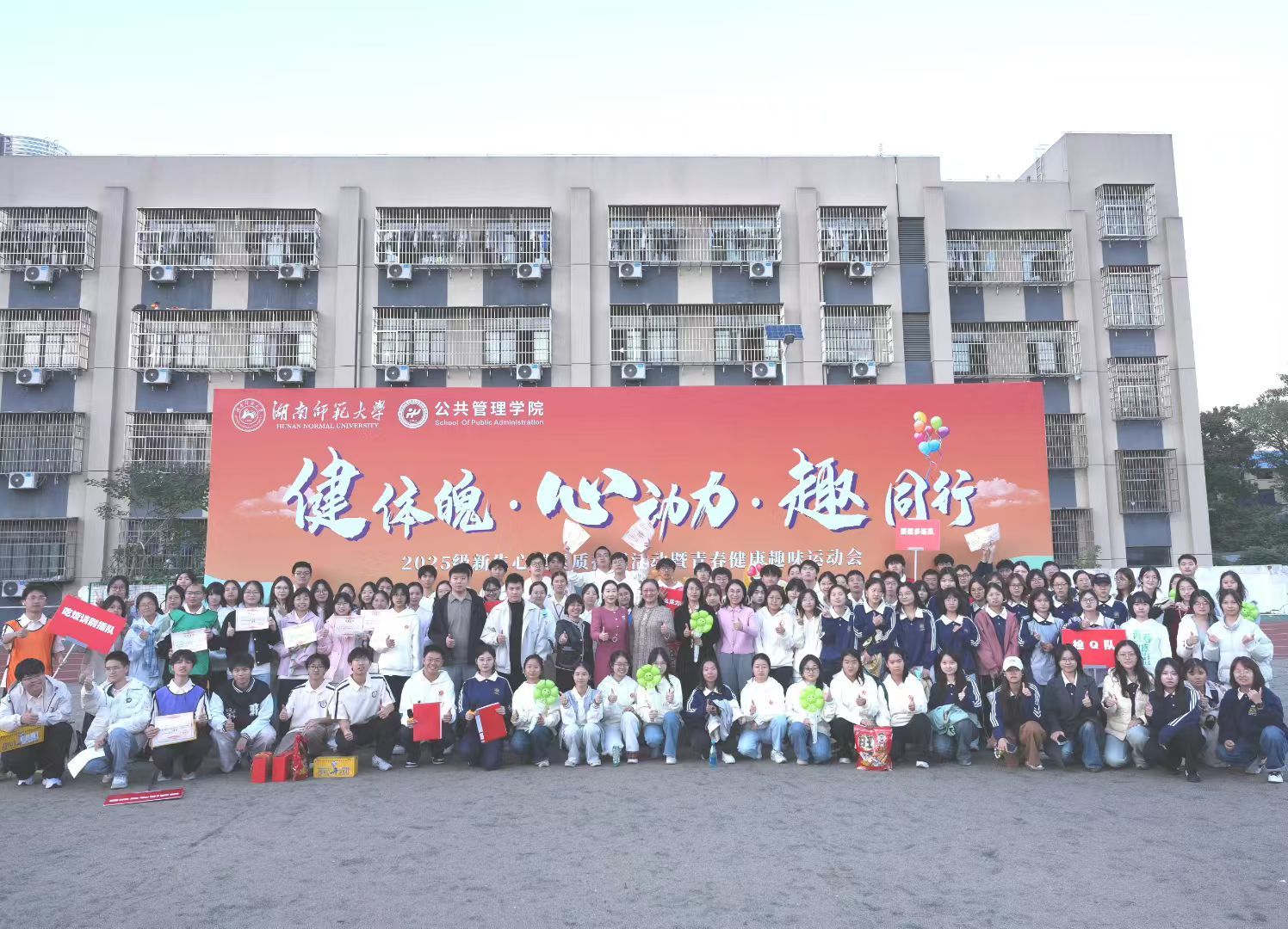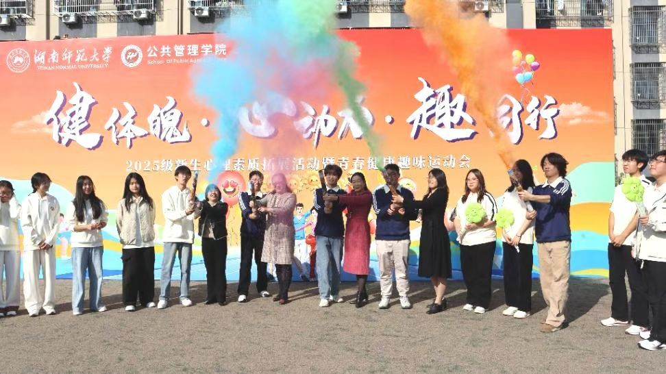 (通讯员 王涵钰 赵露潞 张玉怡)为切实落实立德树人根本任务,将身心健康教育与思想政治教育深度融合,强健学生体魄、普及身心健康知识、培育团队协作精神,11月22日下午,公共管理学院在张公岭校区田径场成功举办“健体魄 · 心动力 · 趣同行 ”2025级新生心理素质拓展活动暨青春健康趣味运动会。校心理健康教育与咨询中心主任余洁、医学部党工委办公室主任杨洁芳、校卫生与计划生育办公室主任邹懿、学院党委副书记陈丽荣、学工办负责人夏瑞霞、团委负责人申峰铭及2025级年级辅导员罗洋出席活动,252名新生踊跃参与,活动由新生马博睿、桂正康主持。