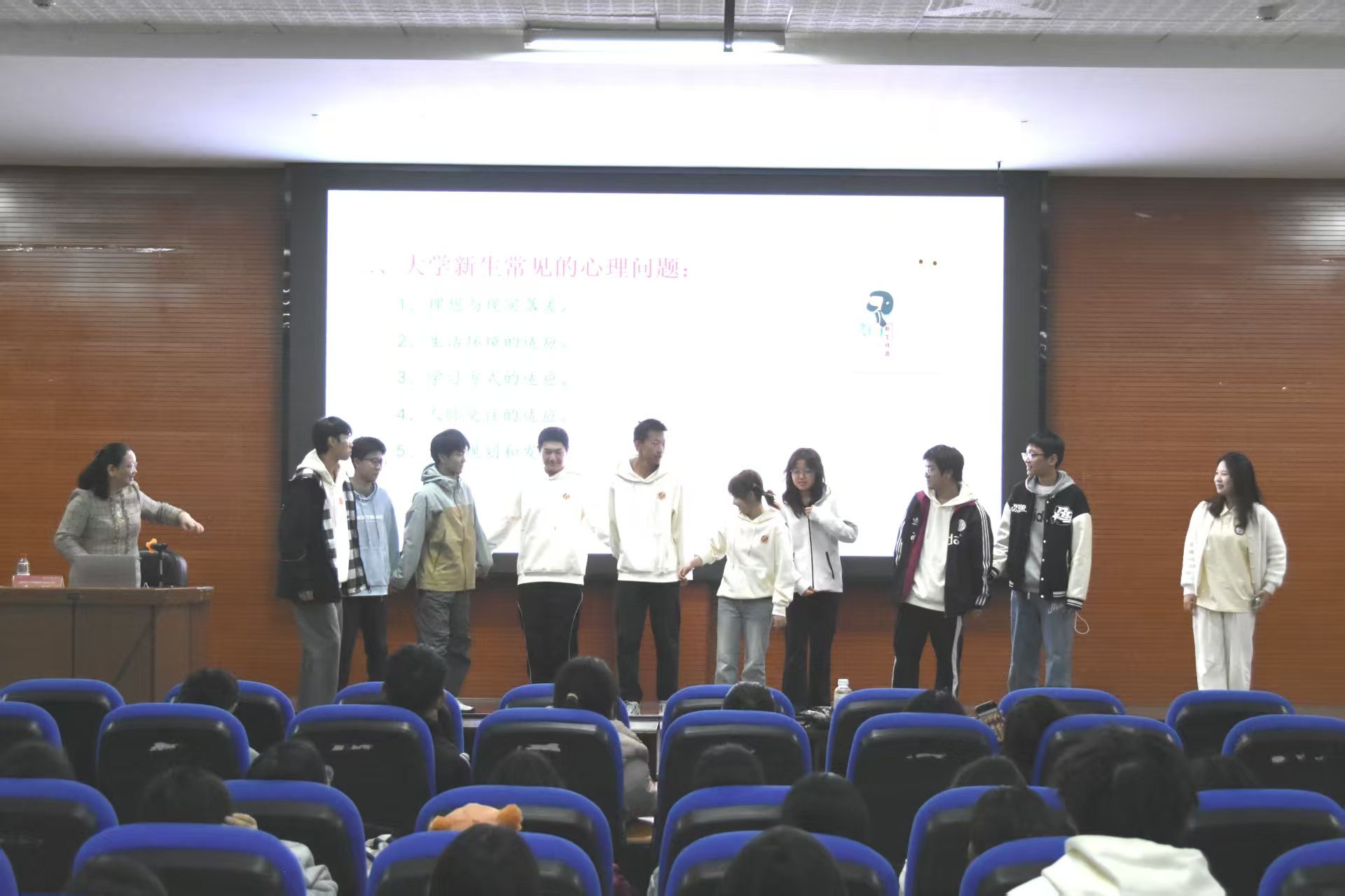 当晚,“日日新·月月谈”新生入学教育第三讲在图书馆报告厅举行。余洁以“大学生心理调适”为主题,通过案例分析、互动问答等形式,系统介绍了掌握情绪管理与压力疏导的实用技巧。邹懿围绕“青春健康教育”,聚焦大学生成长需求,重点普及了性健康防护知识及自我保护方法,引导学生树立健康文明的性观念与婚恋观。