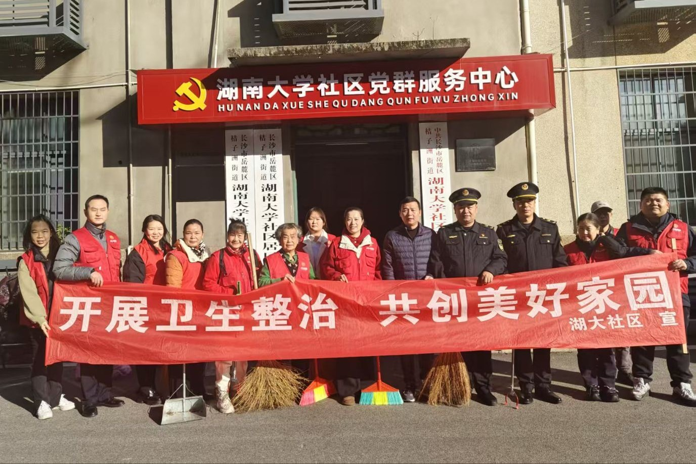 此次活动志愿者按时到达湖南大学社区居委会,与负责此次活动的社区老师对接,并了解今天的任务。活动中,志愿者们跟随社区老师的队伍前往不同地点,开始进行清扫工作。志愿者们分为两队,一队帮助清理垃圾、落叶,另一队协助搬运桌椅,为下午的“遇见中医”活动做准备。一名志愿者表示:“我们彼此支撑,用协作将一件平凡小事完成的充满温度。”活动结束后,活动参与人员在湖南大学社区党群服务中心前进行合影留念,社区老师对志愿者的付出表示肯定。