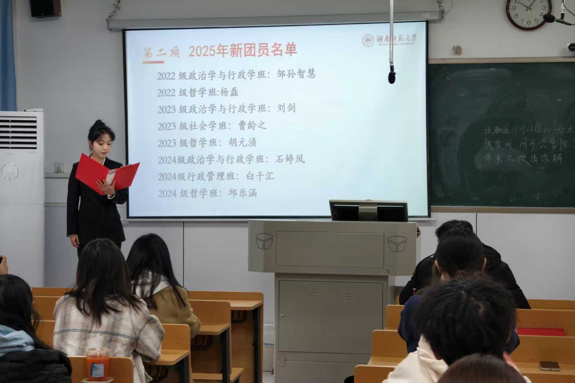 党员代表樊星也对在此次仪式中进行了经验分享。他向新团员表示祝贺,并对参加培训的积极分子表示欢迎。结合自身经历,他阐述了共青团作为党的助手和后备军的重要性。同时鼓励全体入团积极分子珍惜此次培训机会,认真学习,提高思想觉悟,争取早日加入团组织。
