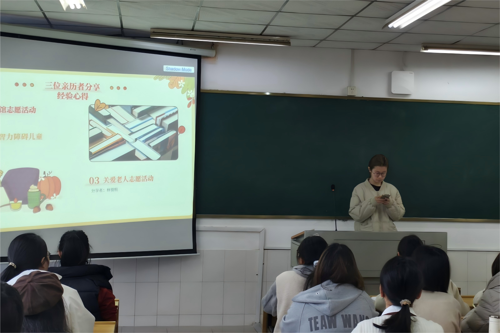 活动伊始,林悦桐作为组织委员进行志愿精神宣讲,从奉献、友爱、互助、进步的内核出发,结合校园志愿实例,向同学们阐释了志愿服务的意义与价值。宣讲结束后,活动进入志愿心得分享环节,现场同学踊跃举手,纷纷讲述自己参与社区助老、校园公益、赛事服务等志愿活动的经历与感悟,言语间满是对志愿服务的热忱与思考。