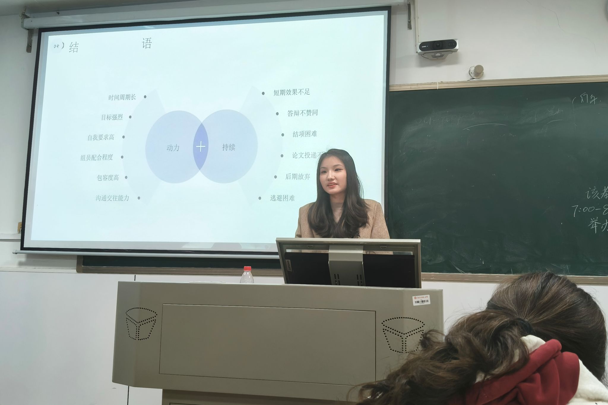 聂晨晨从前期准备,计划书,答辩和后期计划三大模块展开深度分享。在赛道与选题板块,聂晨晨拆解热门赛道选择逻辑,结合人工智能、乡村振兴、文化创新等赛事热门领域案例,讲解如何结合专业特色与市场需求选定优质选题;重点剖析创新创业计划书撰写重点,同时分享团队分工的高效技巧,帮助同学们厘清备赛框架、优化团队协作模式;答辩部分,则围绕准备时间分配、评委问题应对策略及心态调整方法展开,通过实战案例复盘,传授赛场答辩的实用技巧。
