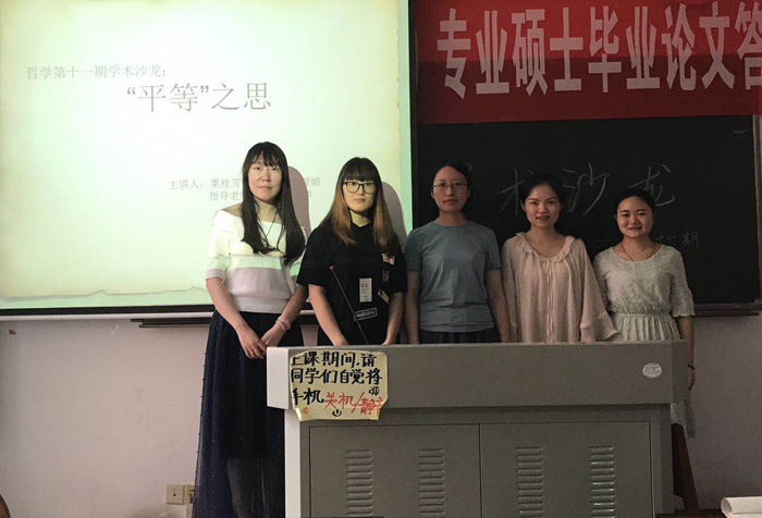 (通讯员 徐蒙翔)6月13日9:30,我院第44期学术沙龙活动在公管楼313教室顺利举行,本次活动的主题为“‘平等’之思”,来自哲学专业的粟桂芳、杨旭、胡源娟、郭红四位同学为主讲人,刘俊丽同学为主持人。本次活动还邀请到刘乐乐老师作为指导老师,为同学们的学术活动进行精彩点评。
