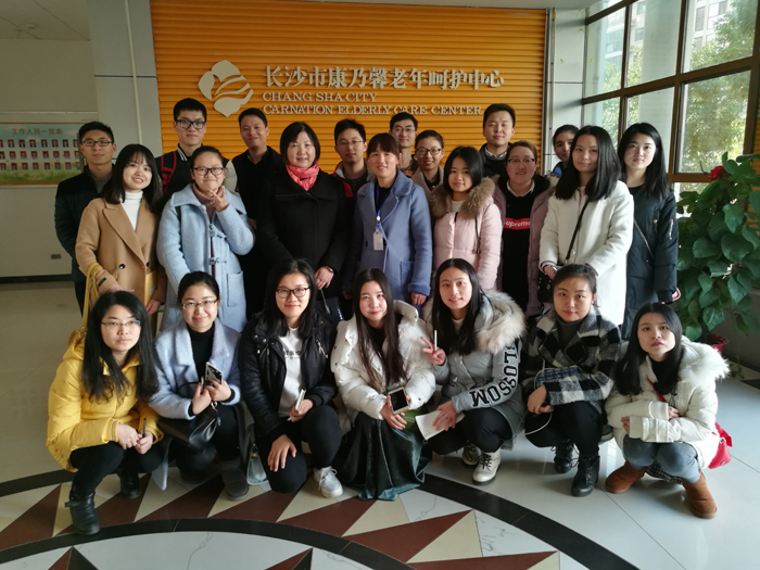 为期一天的学习活动由康乃馨国际老年生活示范城护理部谭主任全程陪同讲解。谭主任讲到:“随着我国老龄化的不断加重,截至2012年10月,我国城乡养老机构发展到4.18万个,养老床位365万张。但平均下来每50个老人拥有不到一张床,老年人养老问题、医疗问题日益严重”。谭主任表示,老年人社会工作专业的发展是社会发展的需要,是解决老年人包括养老等一系列问题的重中之重,希望师大社工专业的学生认真学习专业理论知识,坚持理论与实践相结合,为湖南乃至全国的养老事业作出自己的贡献。
