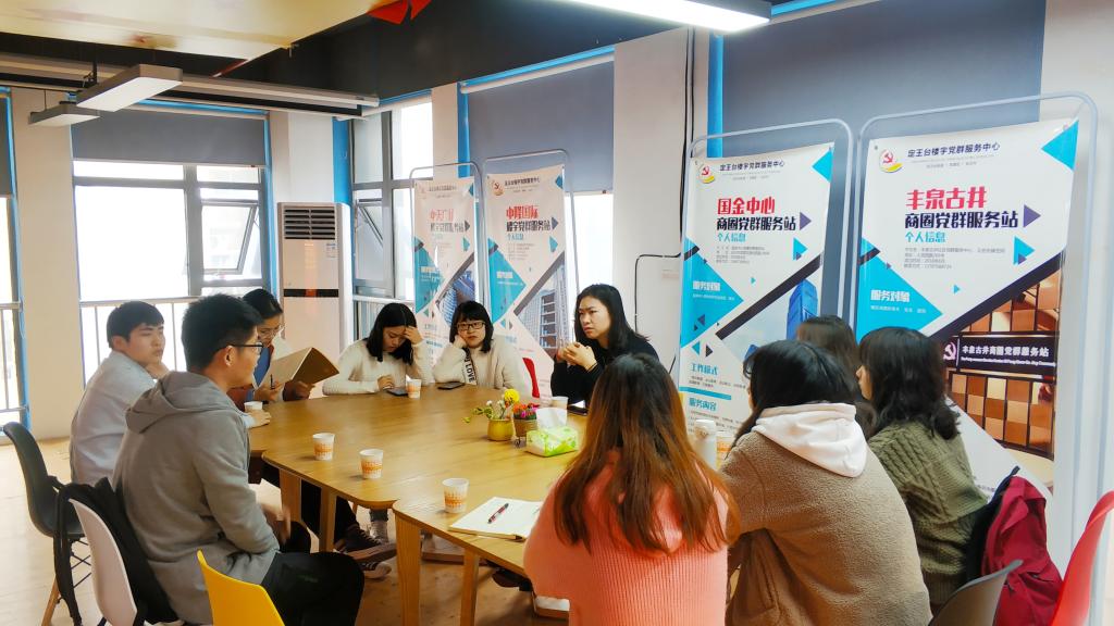 其次,朱佳俊向调研团队介绍了定王台楼宇党群服务项目。朱佳俊表示,定王台楼宇党群服务中心是社区营造深入CBD楼盘的一次重要探索。该项目通过社区居委会提供资金、空间的支持,社会组织进行空间营造、运营与活动组织,调动楼宇内社区居民参与社区公共空间的营造,以培育社区的自组织能力。目前,该服务中心包括社会服务、社区建设、党群建设以及X建设四个板块的内容,为社区营造提供了新的思路。