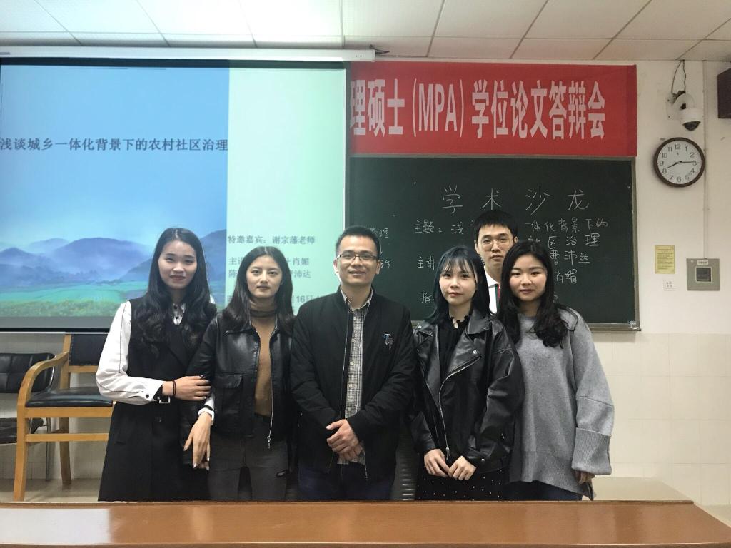 (通讯员:陈雅倩 曾坚强)2019年4月16日晚19:00,我院于公管楼416教室举办了2018级第14期“景德论坛·学术沙龙”活动。本次学术活动以“城乡一体化背景下的农村社区治理”为主题,来自公共管理专业的陈雅倩、罗敬宁、曹沛达、谢卓丹、肖媚五名同学为本次活动的主讲人,李宇晴同学为主持人,并邀请了行政管理系谢宗藩老师为指导嘉宾。