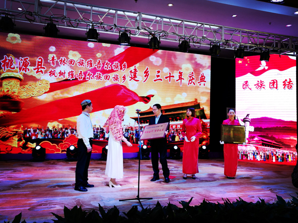 2016年10月19日,湖南省桃源县举行“青林回族维吾尔族乡、枫树维吾尔族回族乡”成立三十周年庆典活动。我校湖南省民族研究基地、民族学与人类学研究中心的研究生在导师龙晔生主编(《民族论坛》杂志)的带领下前往桃源县祝贺及观摩庆典活动。青林和枫树两个民族乡共有少数民族人口1.7万多人,其中维吾尔族1.1万余人,是我国除新疆之外第二大维吾尔族聚居地,被称为“维吾尔族第二故乡”。维吾尔族是湖南省8个世居少数民族之一,在桃源定居始于明朝洪武年间,朱元璋派哈勒•八士率兵南征平乱,其部众后在桃源一带落籍,繁衍生息。