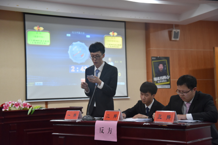 4月25日首场比赛,我院对阵工程设计学院,辩题为“共享单车对于城市交通是利大于弊还是弊大于利”,我院持“弊大于利”的反方立场。比赛中,我院辩论队从容不迫应战,将我方观点娓娓道来,辩手陈述时抑扬顿挫,反驳时一针见血,最后赢得了首场胜利。