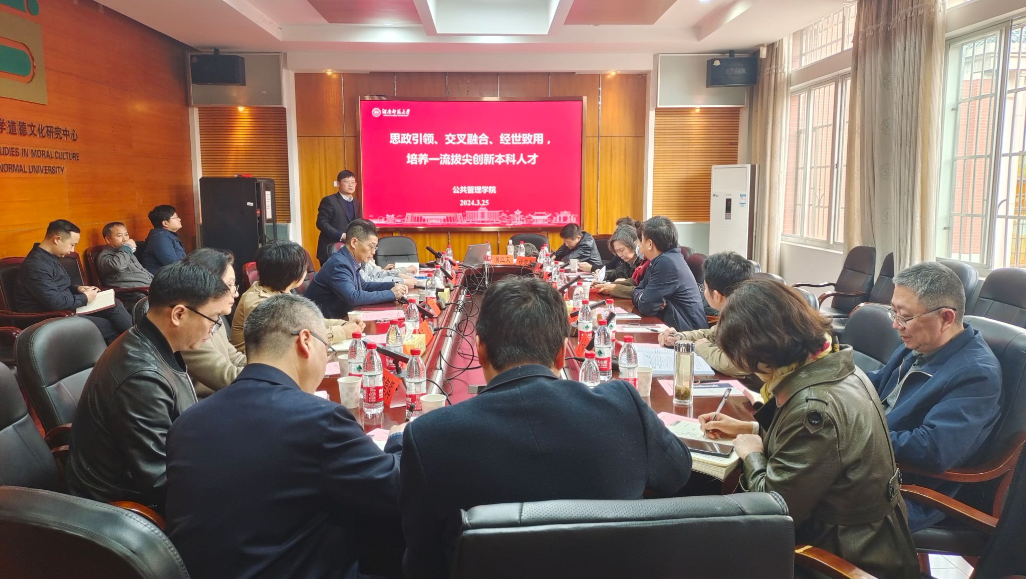 为全面推进本科教育教学审核评估工作,3月25日下午,王辉副校长带领校内专家团队莅临公共管理学院开展本科教育教学诊断性评估工作。专家组成员审阅了学院本科教育教学规章制度建设、各本科专业人才培养方案、课程教学大纲、毕业设计(论文)、试卷材料和引导性材料清单,并深入一线课堂听课,对公共管理学院本科教育教学自评自建工作及存在的问题进行了诊断。下午四点,在景德楼415会议室召开了诊断性评估现场考察专家意见集中反馈会。会议由王辉副校长主持,公共管理学院全体院领导、系主任、教学督导、教师代表、教务办、学工办等相关人员参加了会议。