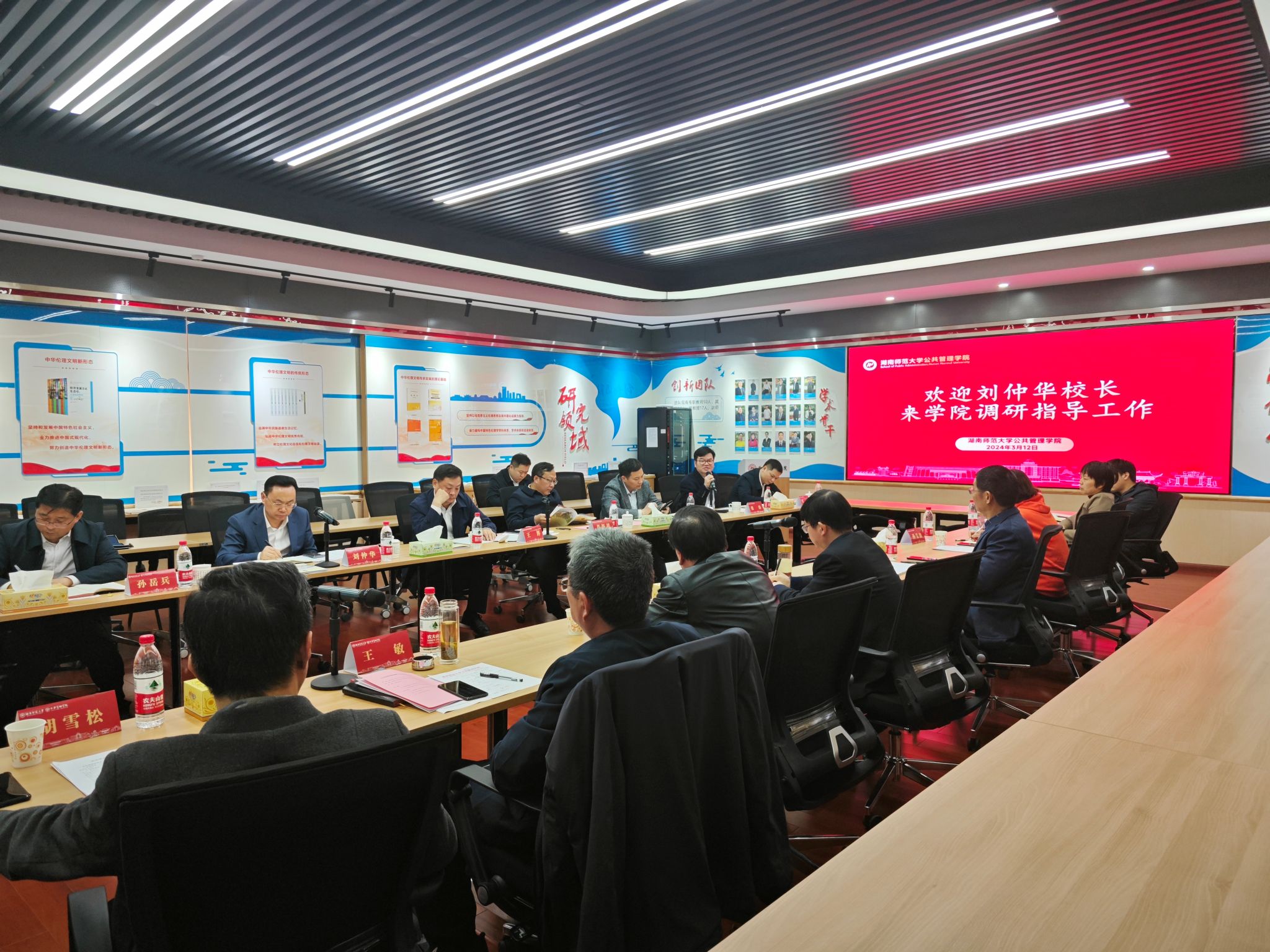 学校校长办公室、发展规划与学科建设处、人事处、社科处、研究生院、创新创业学院等相关单位负责人陪同参与调研;学院党委书记余望成等学院领导班子成员、系主任及学院教职工代表参加座谈会。