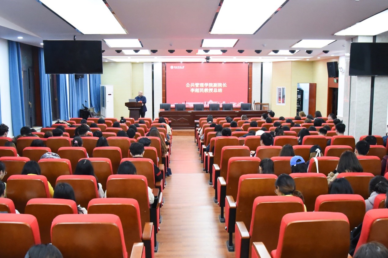 最后,李超民副院长向获奖的研究生表示了热烈祝贺,并对辛勤工作的导师们致以崇高的敬意。之后,简要回顾了我院研究生教育所取得的进步,同时也指出我院研究生培养过程中存在的问题与困难,最后,他带领同学们学习了“公共管理学院硕士生阶段各项培养内容推进时刻表”,希望各位研究生锐意进取、超越自我,努力谱写新的青春华章。