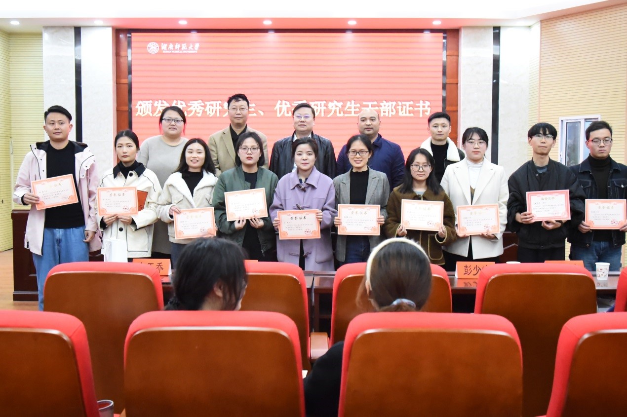 颁奖仪式上,副院长李超民宣读了“优秀研究生”、“优秀研究生干部”获奖名单。道德文化研究院常务副院长向玉乔教授、院长助理刘雪丰教授、行政管理系主任何琴副教授、社会学系彭少峰副教授为获奖研究生颁奖并合影留念。
