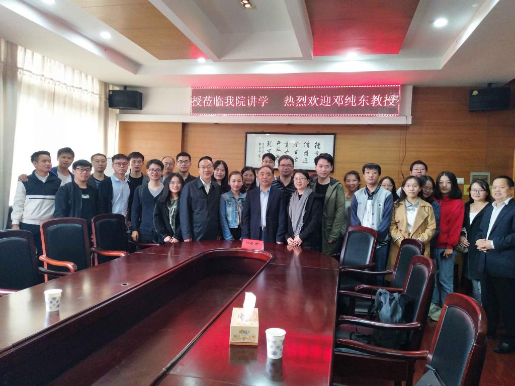 2018年11月4日上午,中国社会科学院马克思主义研究院党委书记、院长邓纯东教授莅临我院做了题为《马克思主义中国化研究的前言与热点问题》的讲座。讲座由公共管理学院胡映兰教授主持,政治学系的蒋国海教授以及中共党史专业博士与硕士生40余人参加了此次讲座。