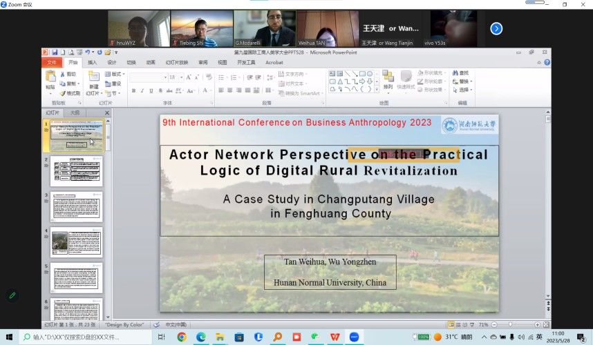 (通讯员:吴永珍)2023年5月28日,我院社会学系谭卫华副教授与其学生2021级社会学专业硕士研究生吴永珍共同参加了在线上平台ZOOM举行的第九届国际工商人类学大会。此次会议由怀化学院主办,怀化学院商学院和怀化学院湖南国际陆港发展研究中心承办,内蒙古财经大学商学院、吉首大学应用人类学高等研究院、国际工商人类学期刊等联合举办。会议以探索能促进和推动工商业界创新和发展新产品与服务的人类学新理论与研究方法,挖掘疫情冲击下的国际贸易发展动力为目标,共设置13个主要议题,开设中英文分会场16个,90多名国内外的专家学者参加大会。