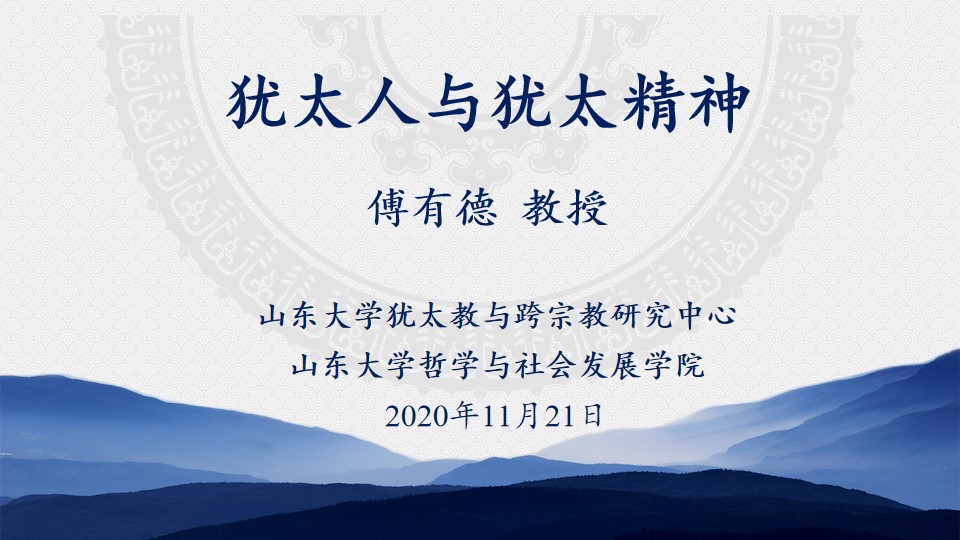 傅有德教授的讲座主要围绕“何谓犹太人”与“何谓犹太精神”两大问题展开,他首先对犹太人的渊源、演化、特性等情况作了简要说明,其次立足共性与个性两个层面分析了“犹太精神”这一概念的内涵,然后着重从神本主义、崇尚德行、求异自立、学而不厌、坚毅不屈五个方面阐述了犹太精神的内核,最后对犹太精神的意义与限度作了总结和反思。