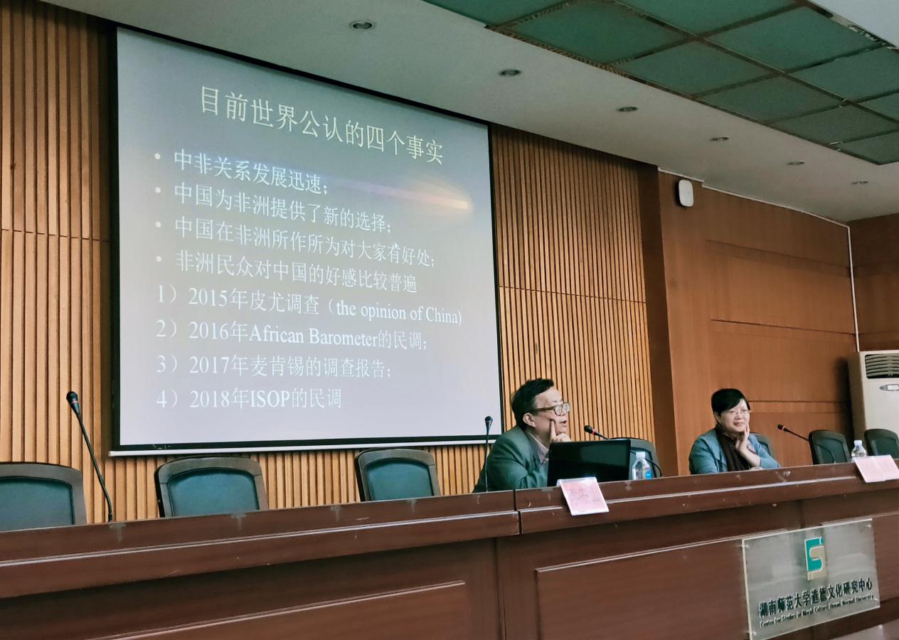 11月1日上午,应我校非洲研究中心的邀请,我校77级校友、国际知名非洲问题专家、北京大学国际关系学院李安山教授莅临我院,在三楼学术报告厅进行了以“世界历史进程中的非洲与中非关系”为主题的学术讲座。此次讲座为“中非关系大讲堂”系列讲座的第二讲,由我校非洲研究中心主任陈晓红教授主持。公共管理学院、法学院、外国语学院以及来自湖南农业大学、中南林业科技大学的百余师生聆听了本次讲座。