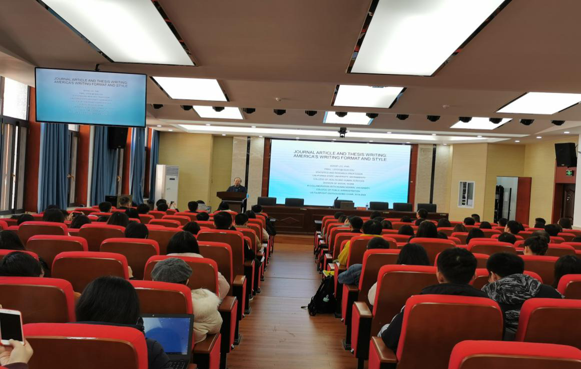 2019年12月3日下午2点,加州大学萨克拉门托分校教授、中美富布赖特杰出学者Serge Lee在公共管理学院博后楼4楼报告厅开设“美式学术论文写作与发表”讲座。谭卫华博士主持了会议。