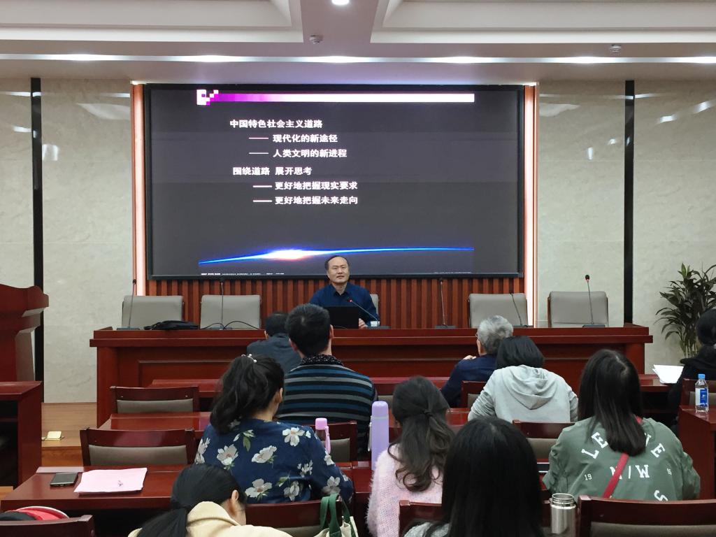 11月2日下午,中国科学社会主义学会常务副会长、《科学社会主义》杂志总编辑、中共中央党校(国家行政学院)博士生导师秦刚教授莅临湖南师范大学公共管理学院,为师生带来“中国特色社会主义道路的开创和拓展”的专题报告。报告在博后楼303室举行,中共党史学科负责人胡映兰教授主持。