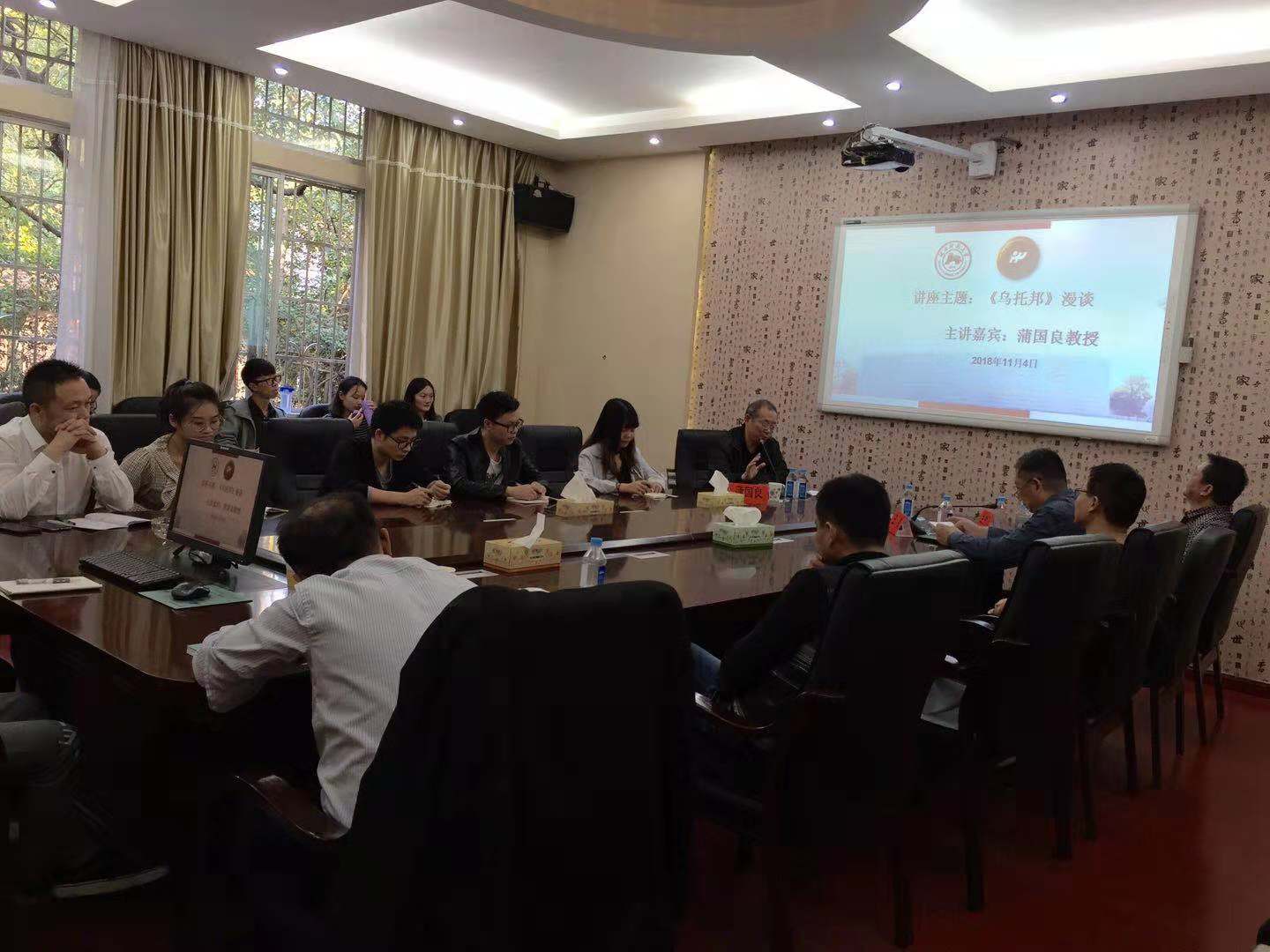 (通讯员陶富林)2018年11月5日下午,中国人民大学国际关系学院世界社会主义研究所所长,博士生导师蒲国良教授莅临湖南师范大学公共管理学院,为师生带来题为“《乌托邦》研究漫谈”的学术讲座,讲座由政治学一级学科博士点主办,由严小龙教授主持,王敏教授等政治学一级学科部分教师、博士研究生、硕士研究生聆听了本次讲座。