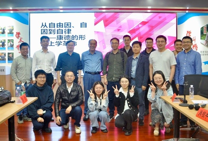 (通讯员:李志龙)2023年10月25日晚,由湖南师范大学哲学系、道德文化研究中心举办的“自由、道德与语言”德国哲学系列讲座第二讲“从自由因、自因到自律—康德的形而上学革命”在湖南师范大学公共管理学院景德大讲堂顺利开展。本次讲座由中国人民大学哲学院张志伟教授主讲,湖南师范大学道德文化研究院院长兼哲学系主任向玉乔教授主持,湖南师范大学哲学系胡好教授、湖南大学岳麓书院丁三东教授与湖南师范大学哲学系肖根牛博士参与与谈,讲座采取线上线下结合的方式,腾讯会议、B站同步直播。