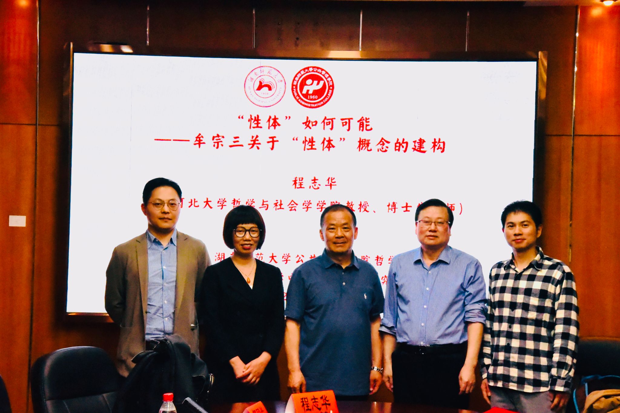 (通讯员:曾浩楠)3月30日晚上,河北大学哲学与社会学学院程志华教授莅临我院讲学,在景德楼415会议室做了题为“‘性体’如何可能—牟宗三关于‘性体’概念的建构”的精彩讲座。该讲座由湖南师范大学公共管理学院哲学系、湖南师范大学中华伦理文明研究中心主办。我院哲学系郭园兰教授主持本场讲座。道德文化研究院院长兼哲学系主任向玉乔教授,哲学系邹啸宇副教授、马俊老师等40余名师生,以及湖南大学、中南大学的部分同学参与了本场讲座。